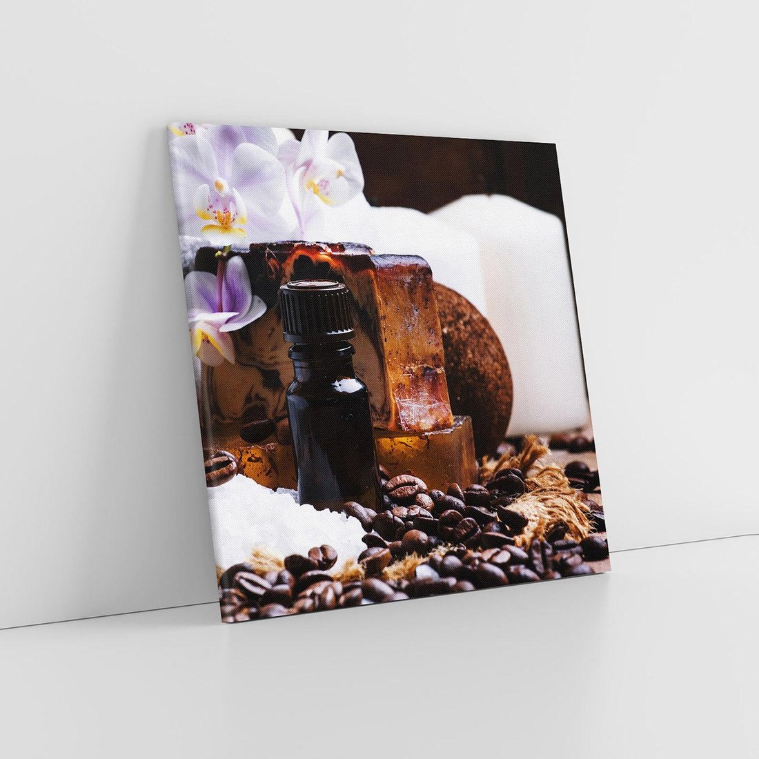 - Obraz na płótnie 70x70 - Kawa i kwiaty w SPA