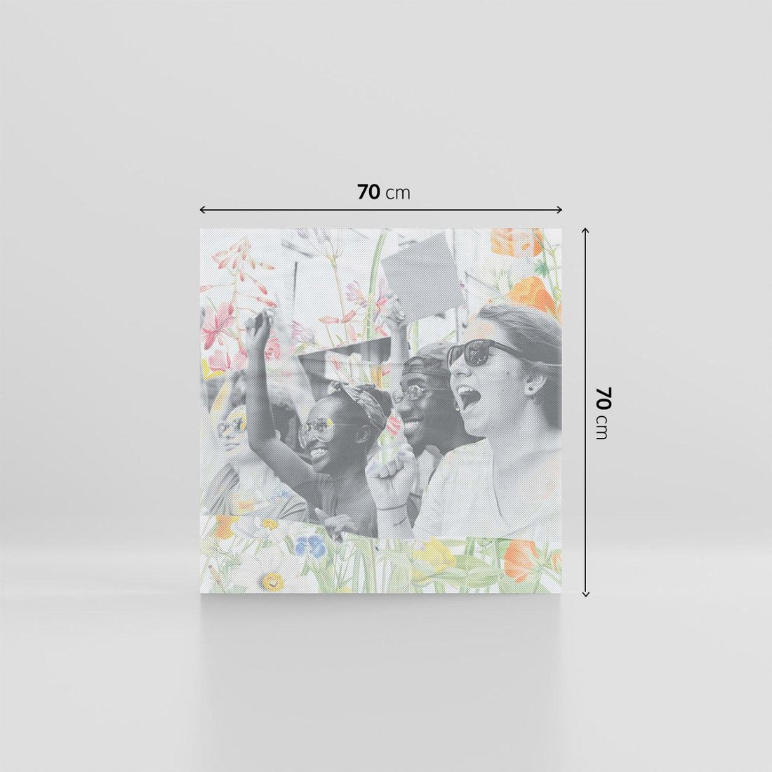 Obraz na płótnie 70x70 - Księga zaklętych marzeń - kolaż, czarnobiałe zdjęcie wesołych młodych ludzi