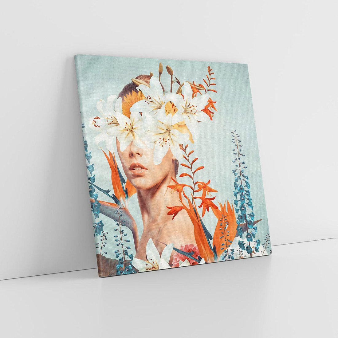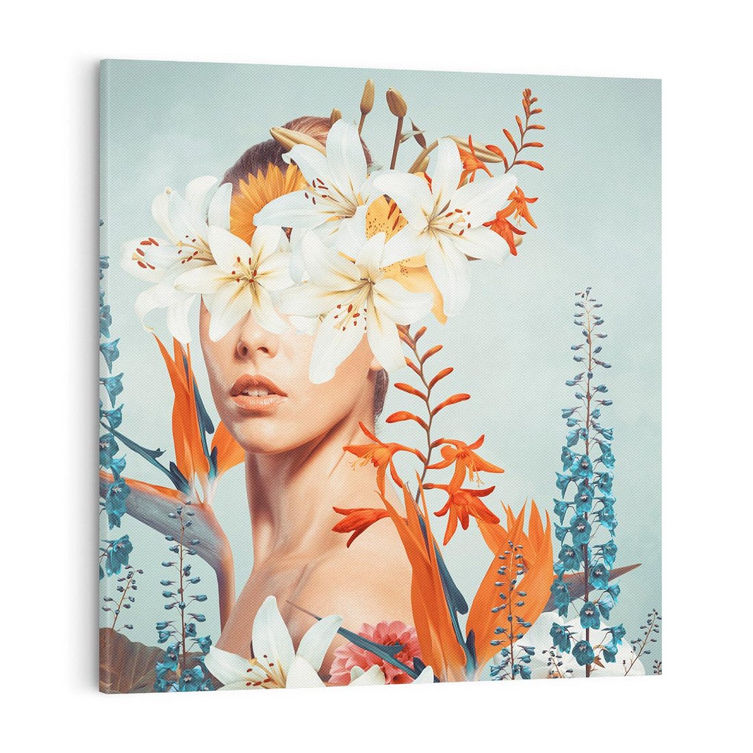Obraz na płótnie 70x70 - Kwiatowa Enklawa Uroku - kolaż, nierealna kompozycja