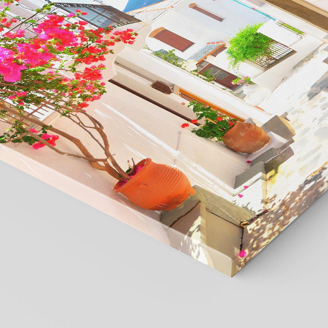 Ożyw swoje wnętrze tym uroczym obrazem przedstawiającym kolorowe kwiaty na urokliwej uliczce. Soczyste kolory, delikatne detale i letni nastrój tworzą radosną atmosferę. Ten obraz dodaje świeżości i wakacyjnego nastroju, idealny dla osób pragnących przynieść do swojego domu atmosferę letnich wakacji i piękno natury.