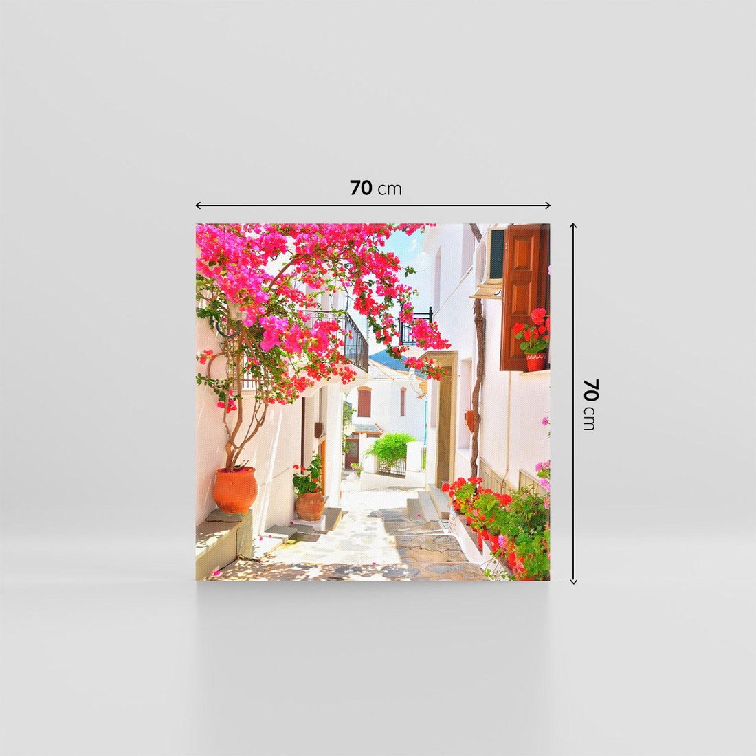 Obraz na płótnie 70x70 - Kwiatowa uliczka wakacji - kwiaty, uliczka