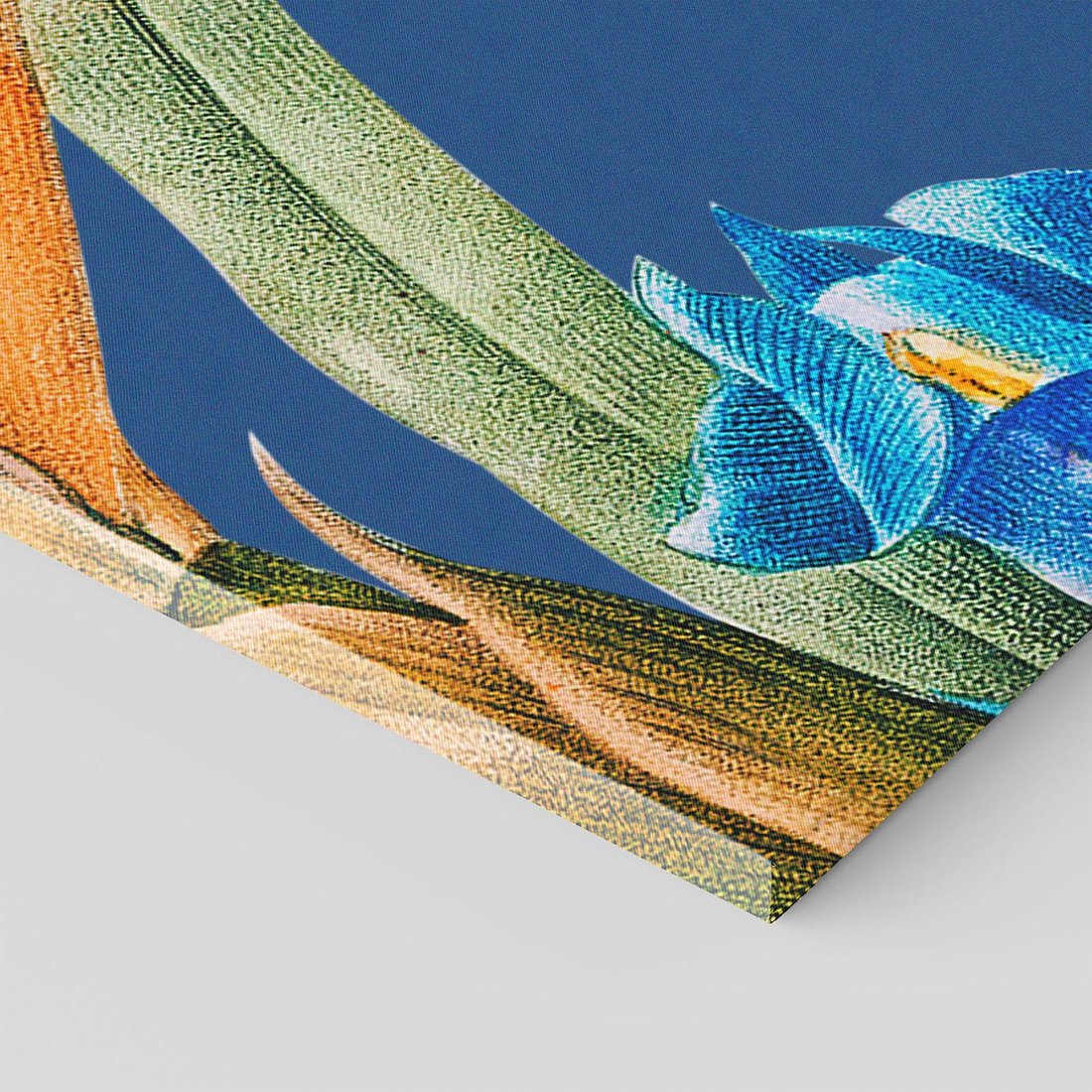 Wielkoformatowe zbliżenie na tropikalne kwiaty w stylu vintage ukazuje roślinne detale w intensywnych kolorach. To mistyczne wyobrażenie natury przenosi nas w inną epokę, gdzie kwiaty ożywają w intensywnym blasku. "Kwiatowe Impresje z Minionej Ery" to podróż w czasie, wzbogacona bogactwem kwiatowych form i zmysłowych barw.