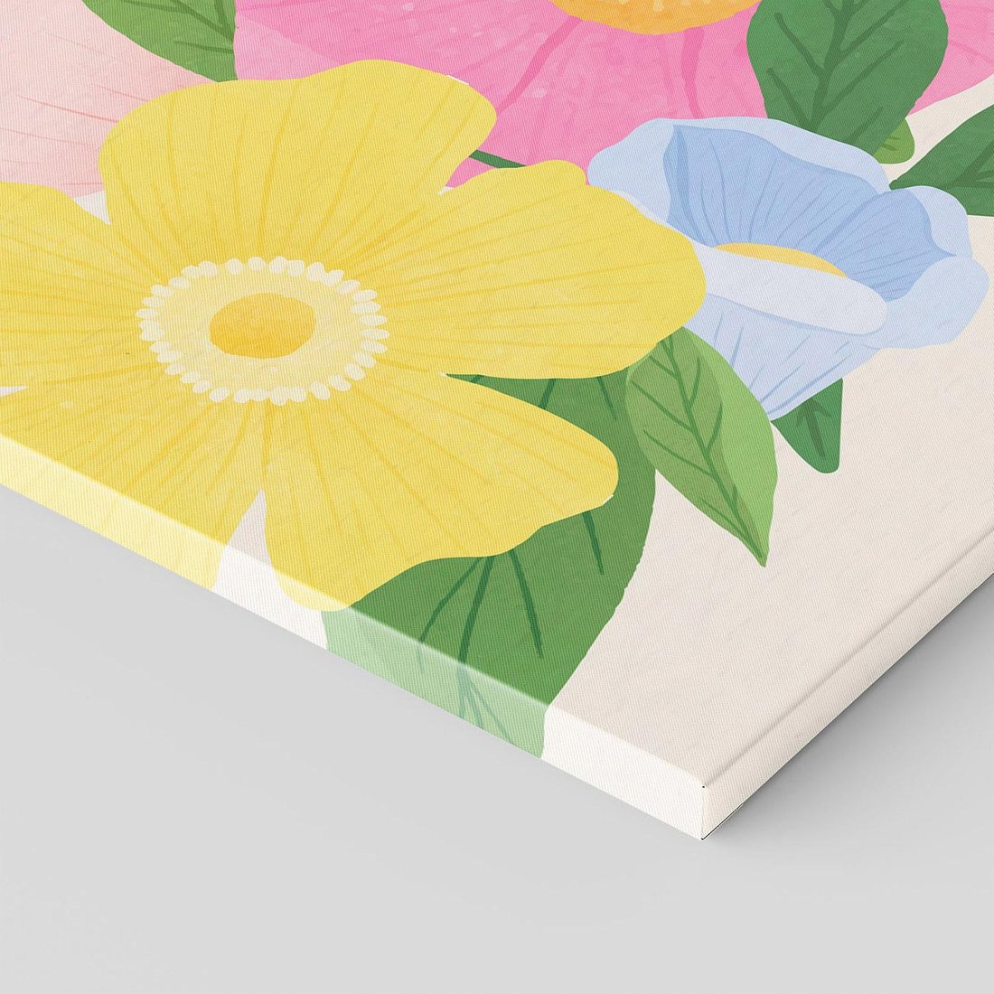 Ten kolorowy obraz w technice akwareli przynosi do dziecięcego pokoju magiczną aurę kwiatów. Harmonijne połączenie barw tworzy subtelny i łagodny efekt, który idealnie wpisuje się w przytulne wnętrze, dodając nuty czarującej poezji natury.
