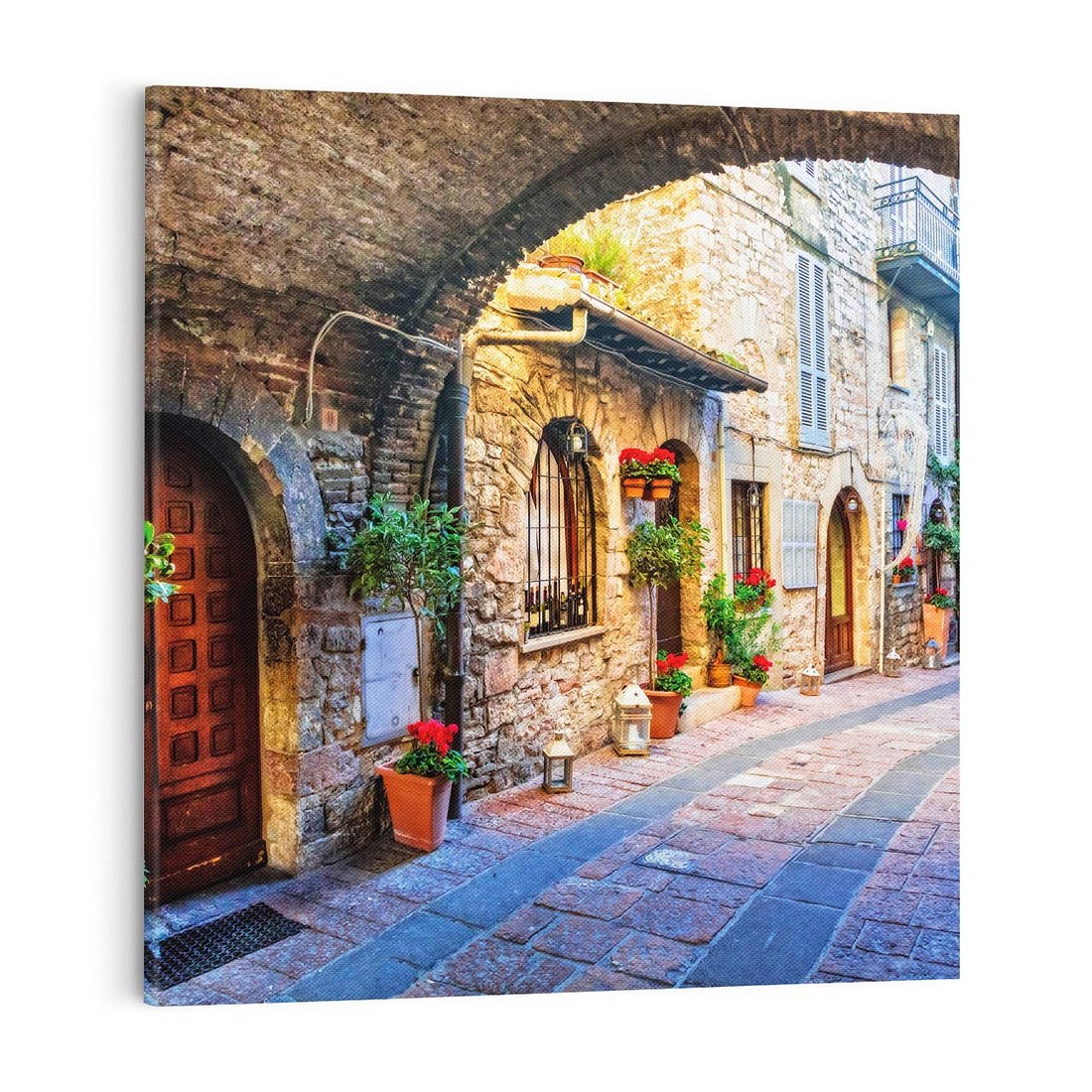 Obraz na płótnie 70x70 - Kwiecista uliczka - uliczka, miasto