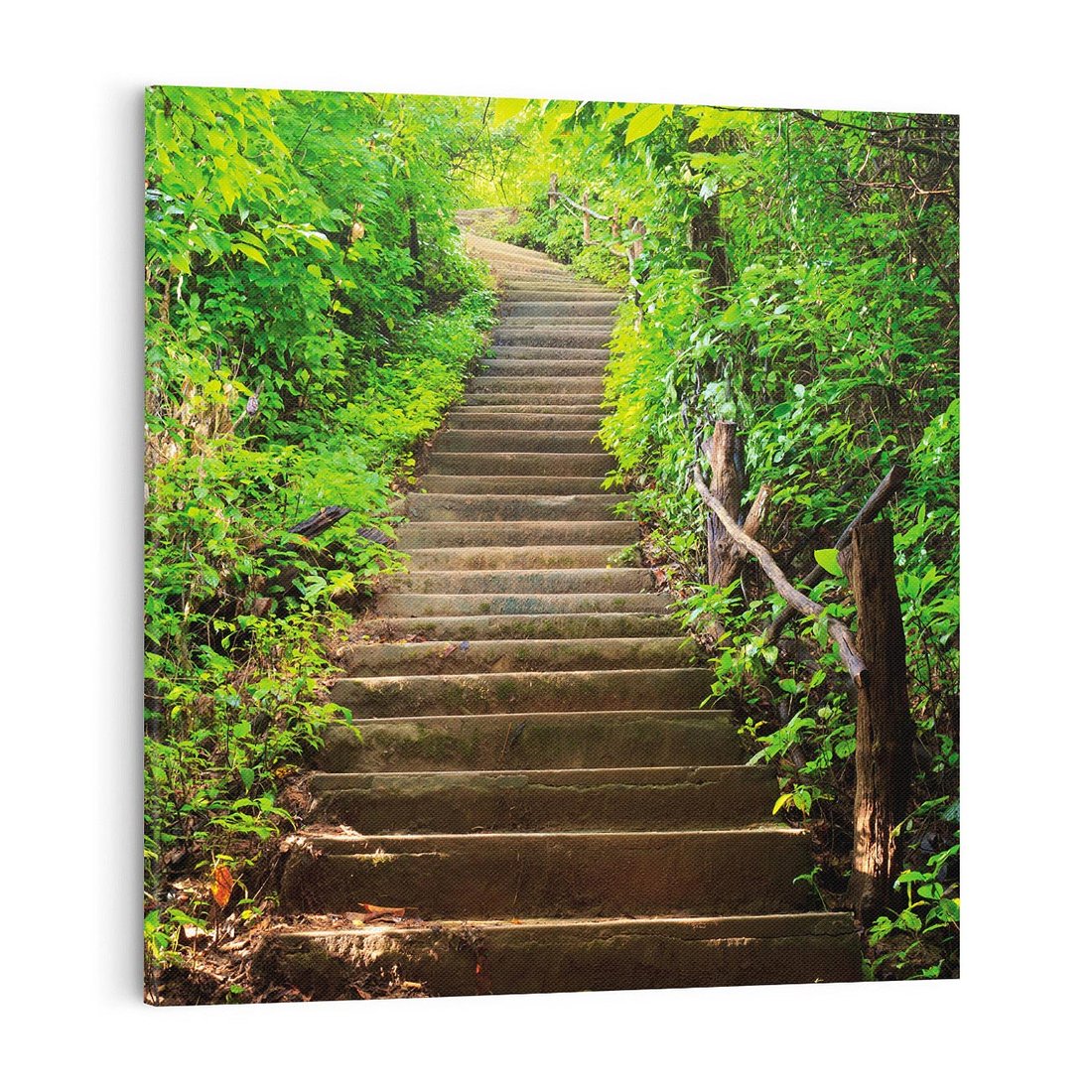 Obraz na płótnie 70x70 - Lasowa ścieżka pełna tajemnic - ścieżka, schody