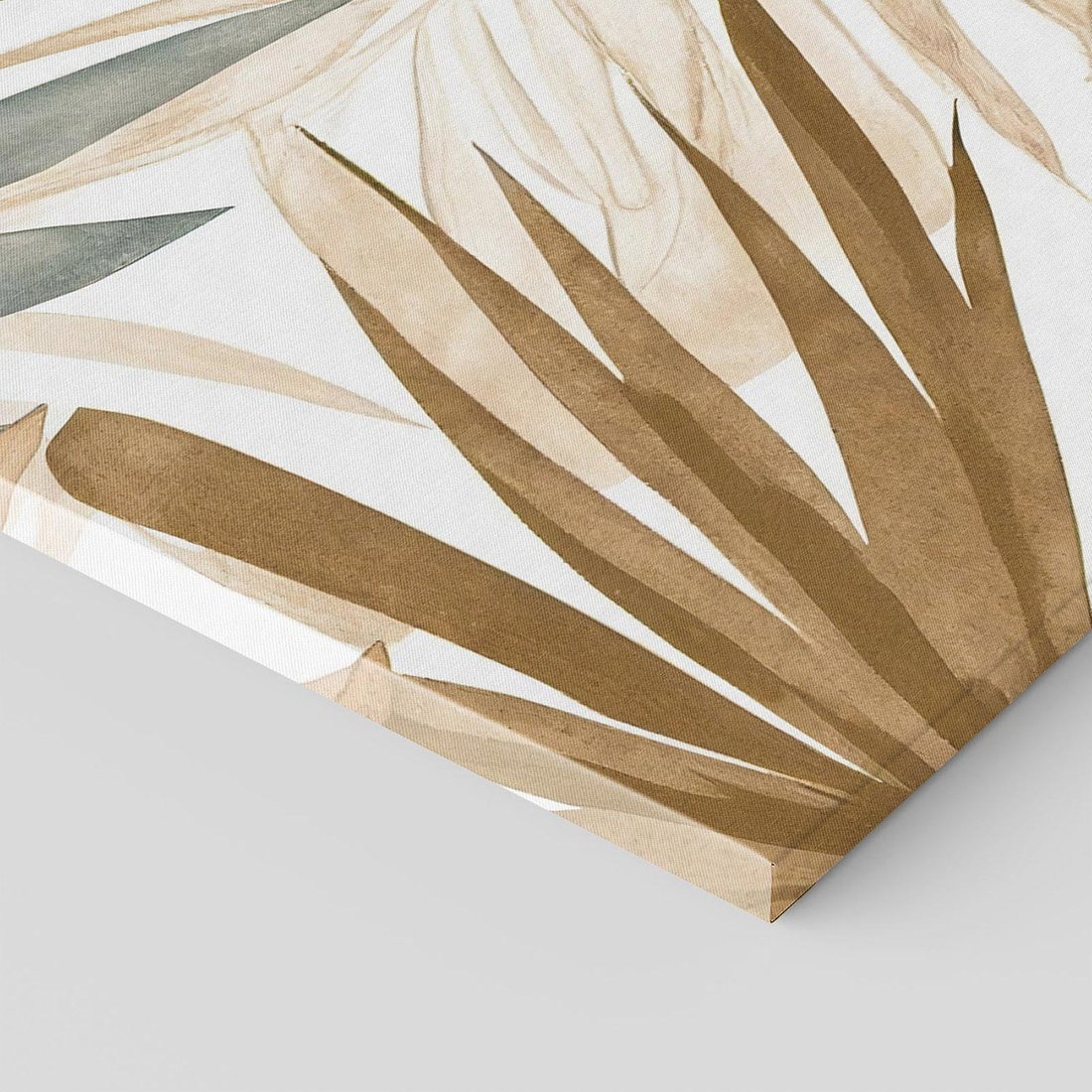 Ta akwarela przedstawia piękne palmy z delikatnie malowanymi liśćmi, w neutralnych spokojnych odcieniach beżu i zieleni. Doskonały sposób, aby wprowadzić harmonię natury do Twojego wnętrza.