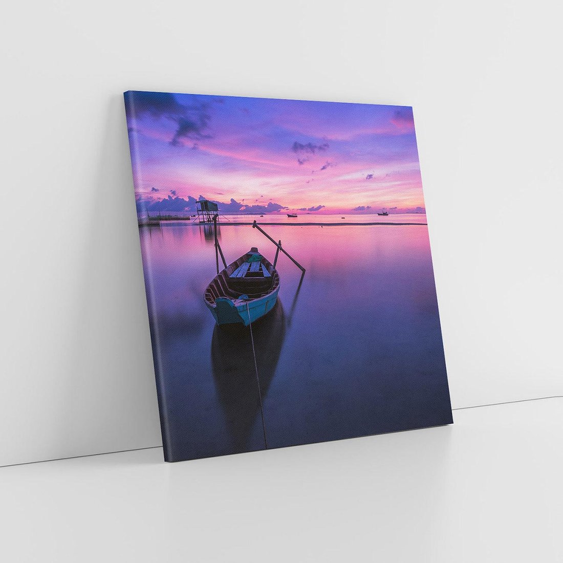 - Obraz na płótnie 70x70 - Łódka i zachód słońca nad morzem