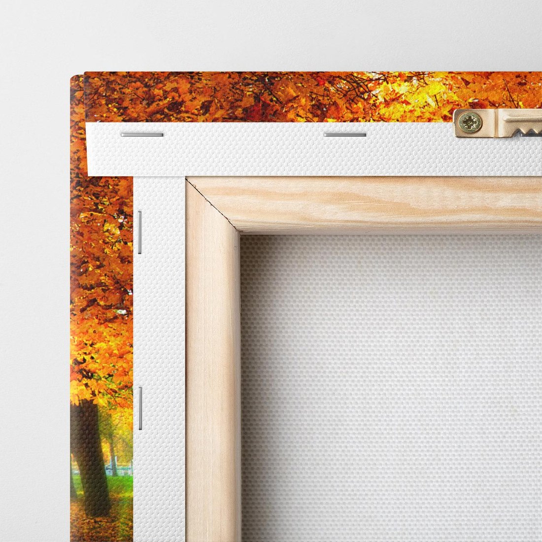 Ten malarski obraz na płótnie uchwyci magię jesieni w lesie. Jego złote, czerwone i pomarańczowe odcienie, opadające liście i gęste drzewa wprowadzą atmosferę nostalgii i piękna natury do Twojego wnętrza. Odczuj urok jesiennego krajobrazu w swoim domu.
