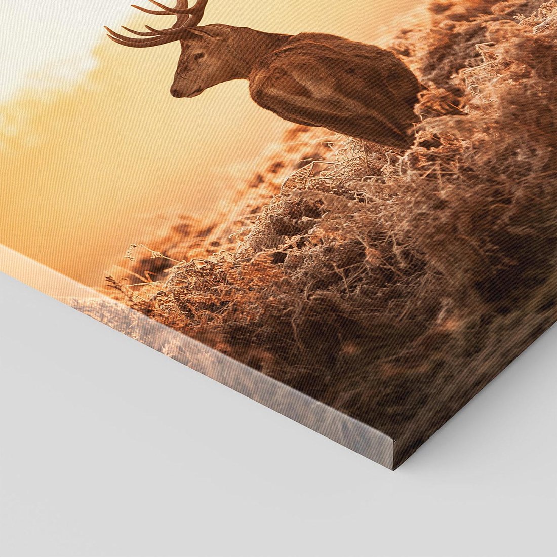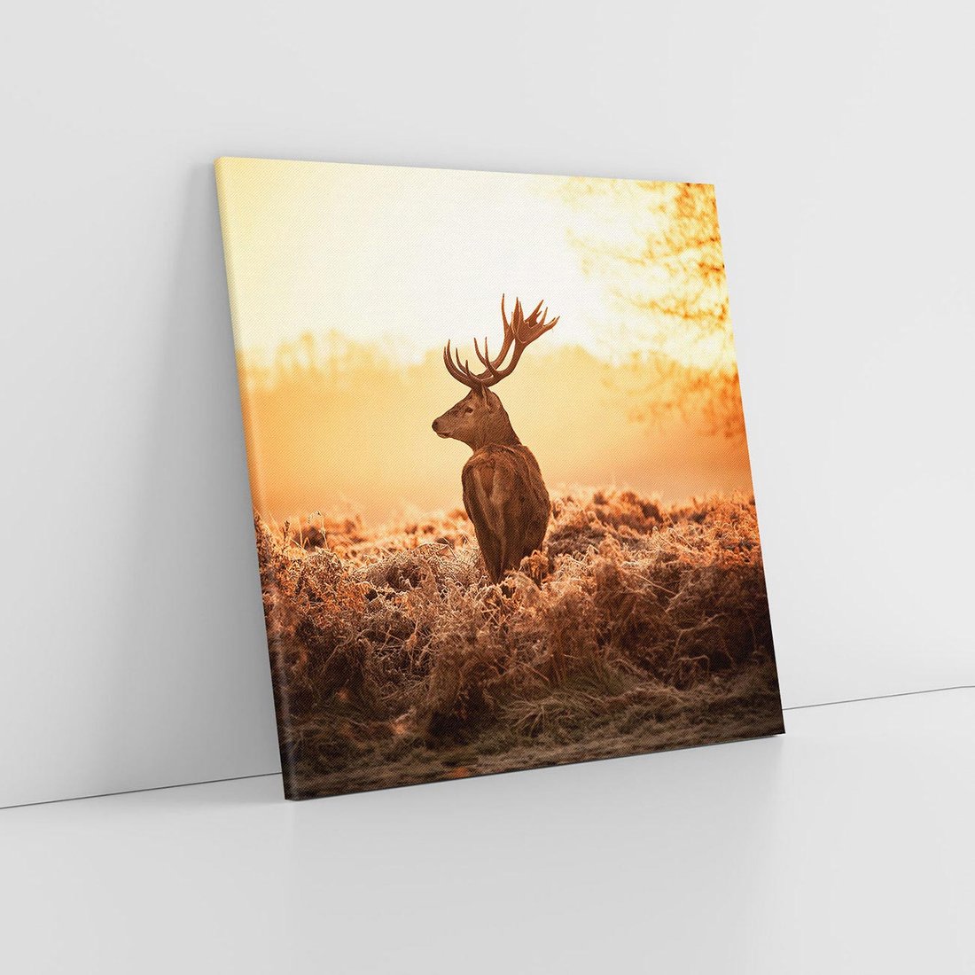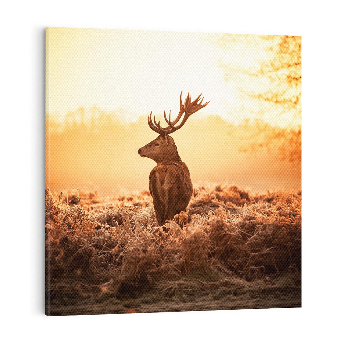 - Obraz na płótnie 70x70 - Magia jesiennego słońca: Jeleń w promieniach