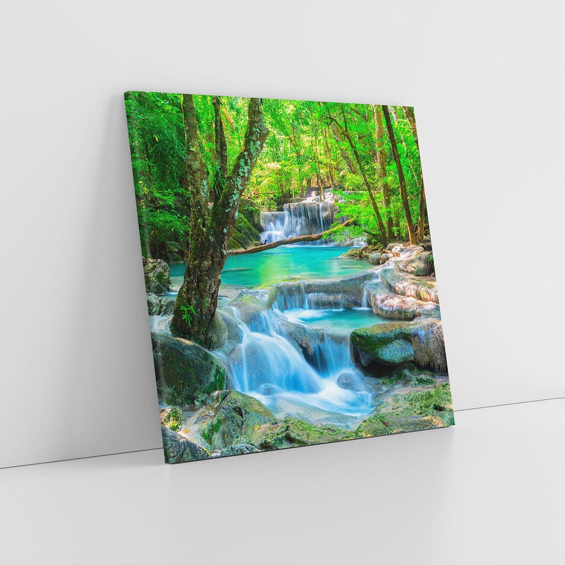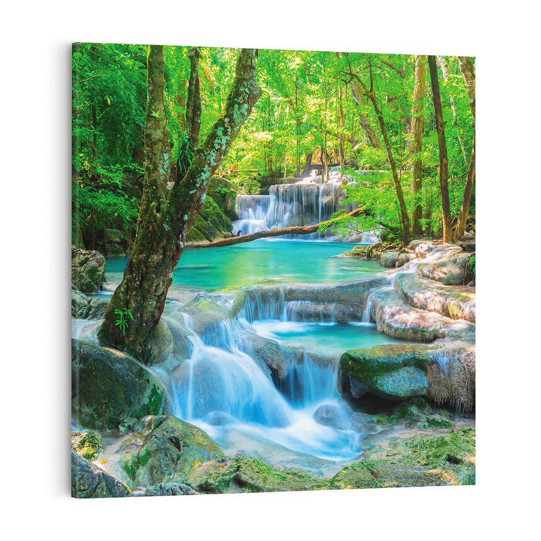 Obraz na płótnie 70x70 - Magia w lesie nad rzeką - wodospad, rzeka