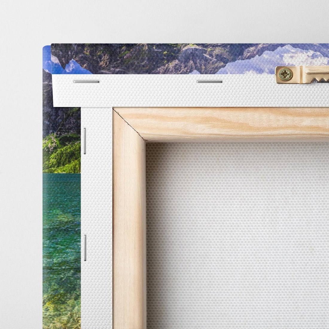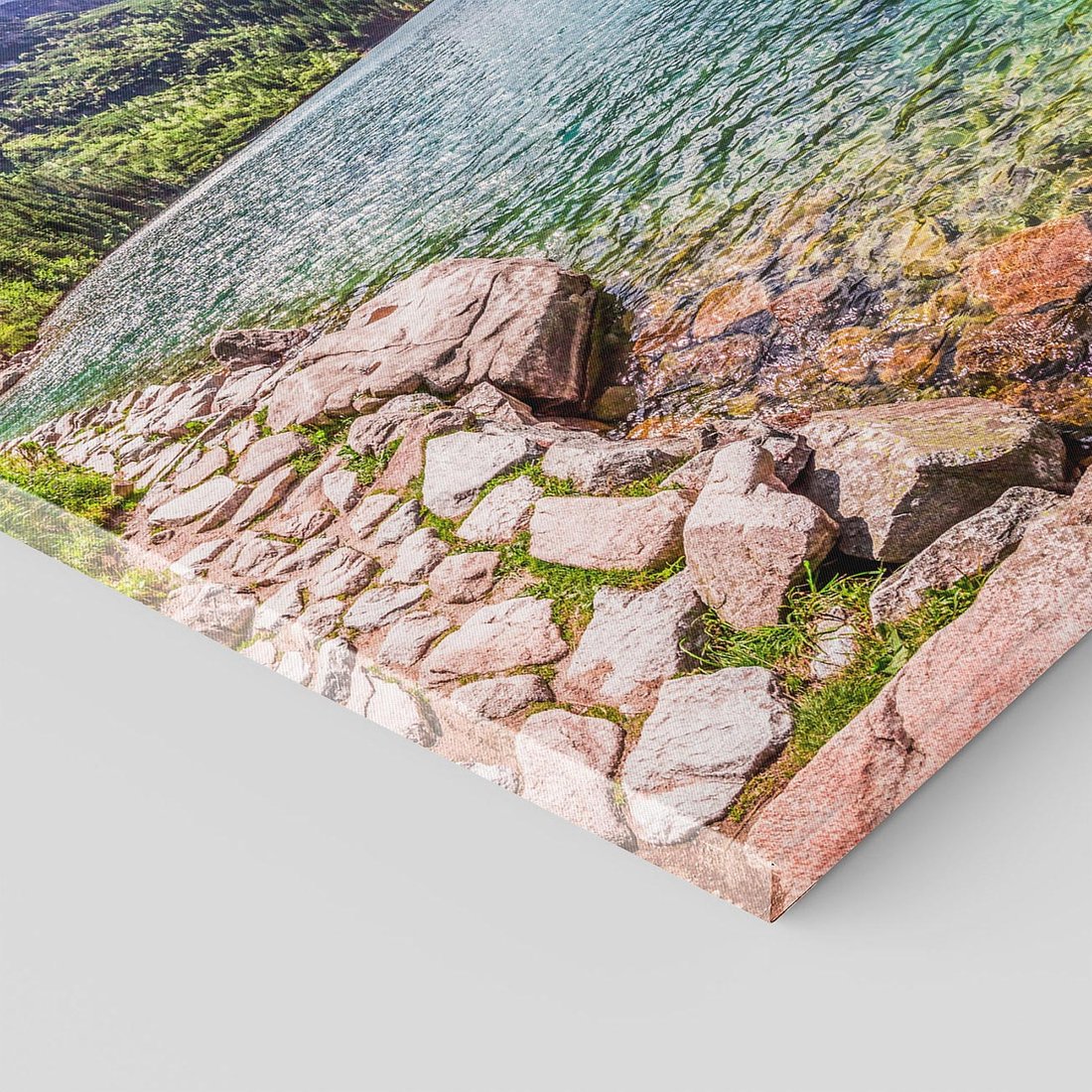 Odkryj wspaniałość górskiego krajobrazu dzięki temu malowniczemu obrazowi przedstawiającemu jezioro otoczone przez majestatyczne szczyty. Szmaragdowa woda, ośnieżone wierzchołki i spokojna atmosfera tworzą urokliwy obraz. Ta kompozycja dodaje harmonii i siły natury, idealna dla miłośników górskich widoków i odprężającej scenerii.