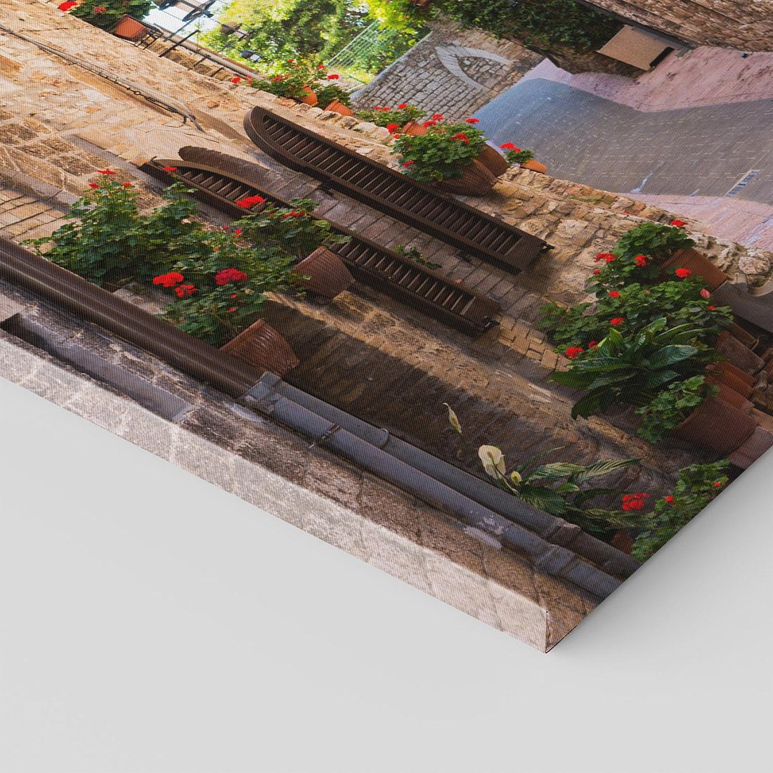 Przenieś się w świat romantycznych emocji na tej uroczej uliczce, pełnej kwiatów i pięknych detali architektonicznych. Jej klimatyczna atmosfera i urok tworzą aurę miłości i magii. Ta kompozycja dodaje romantyzmu i nostalgia, idealna dla miłośników romantycznych chwil i uroku uliczek.