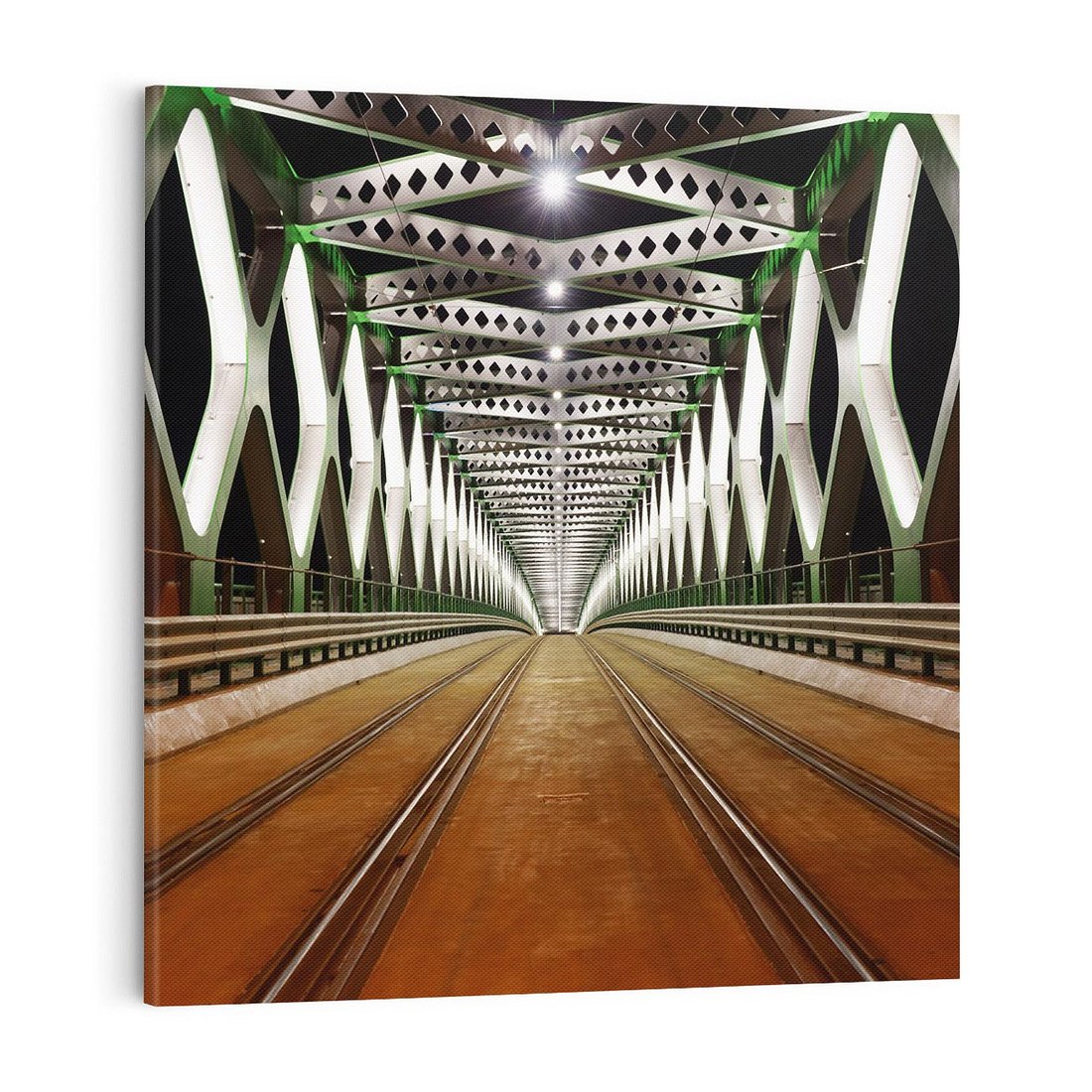 Obraz na płótnie 70x70 - Most kolejowy w nocy - most, kolej