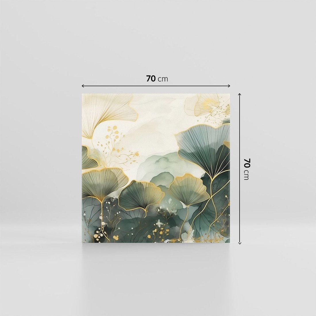Obraz na płótnie 70x70 - Natura w Złotym Odcieniu - złote elementy, liście miłorzębu japońskiego