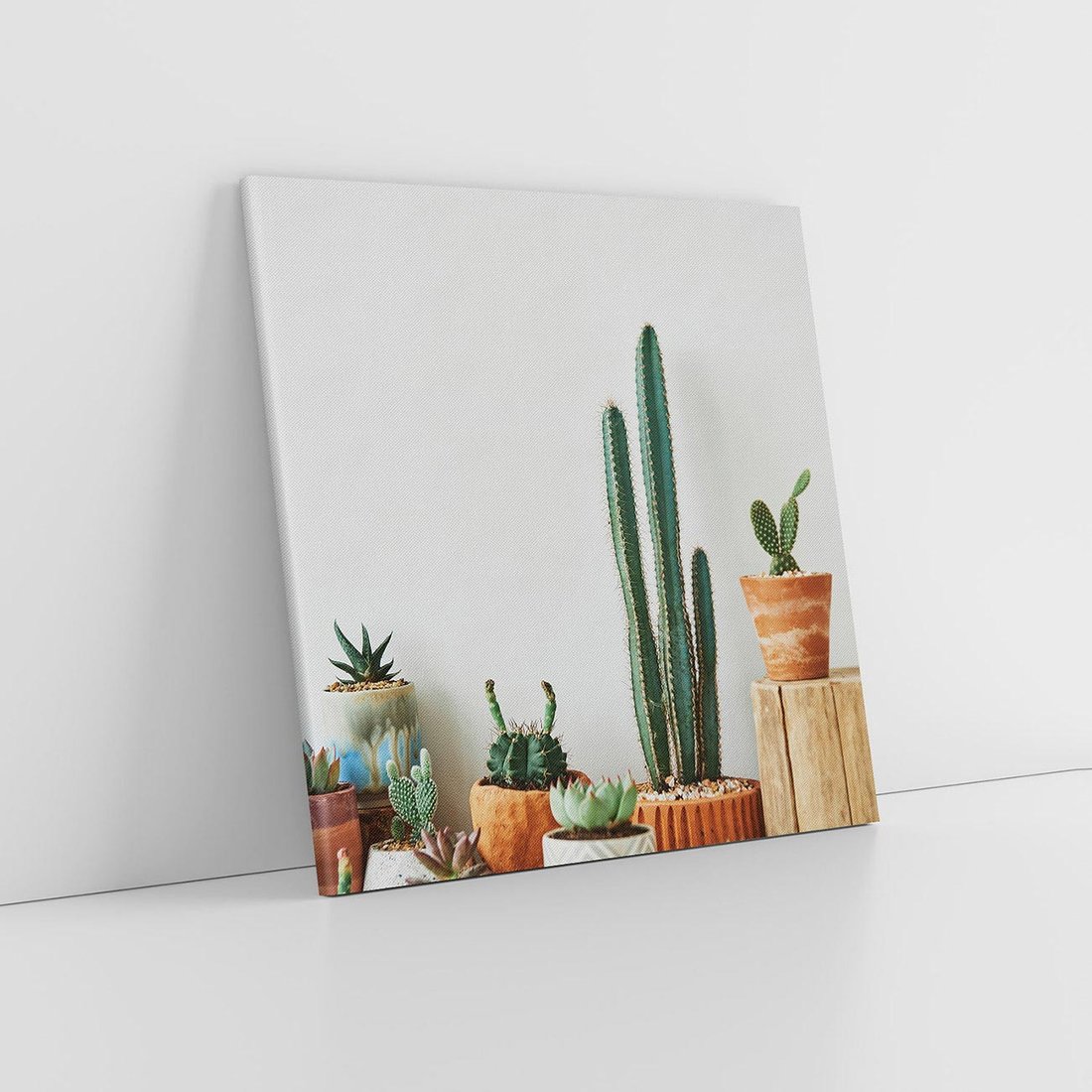 Obraz na płótnie 70x70 - Naturalna Harmonia - kaktusy, liście