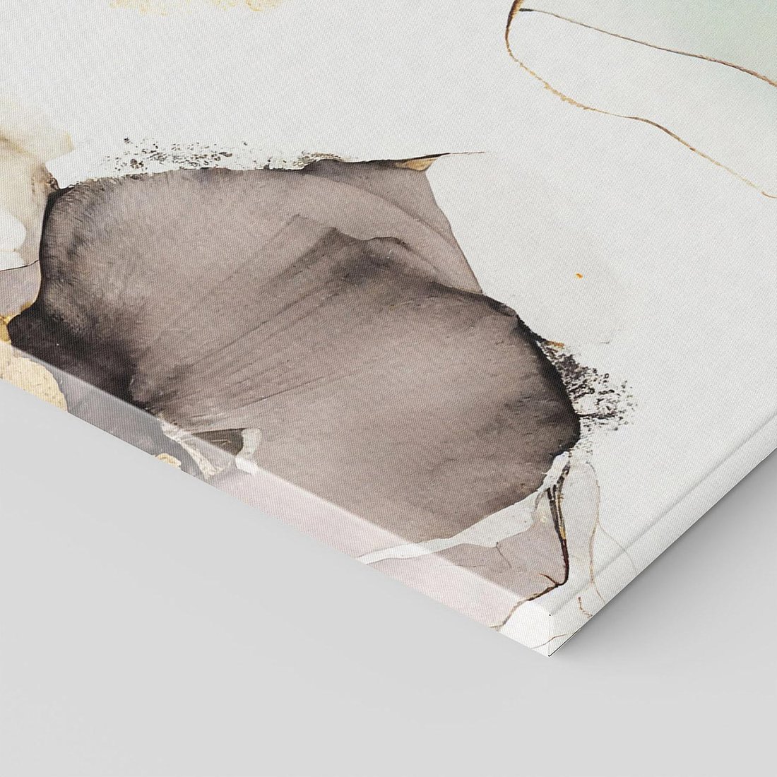 Odkryj elegancję w tym akwarelowym dziele sztuki, gdzie złote linie i plamy harmonijnie współgrają z beżowymi i brązowymi odcieniami. Doskonałe dopasowanie do nowoczesnego wnętrza.