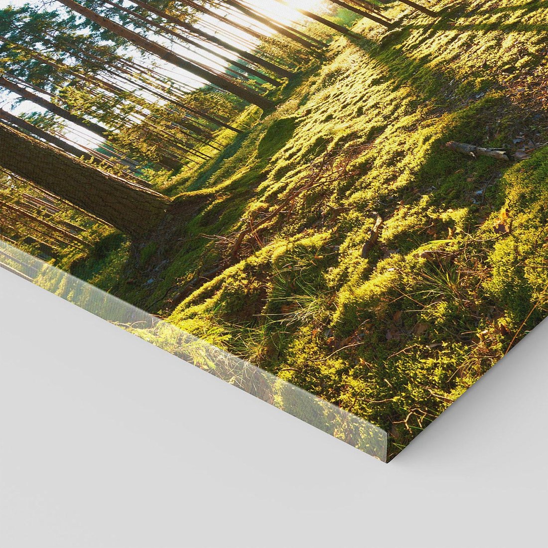 Ożyw swoje wnętrze tym uroczym obrazem przedstawiającym las w pełnym rozkwicie. Soczysta zieleń, kolorowe kwiaty i gęsta roślinność tworzą obfitość natury. Ta kompozycja dodaje energii i świeżości, idealna dla miłośników piękna przyrody i bujności lasu.