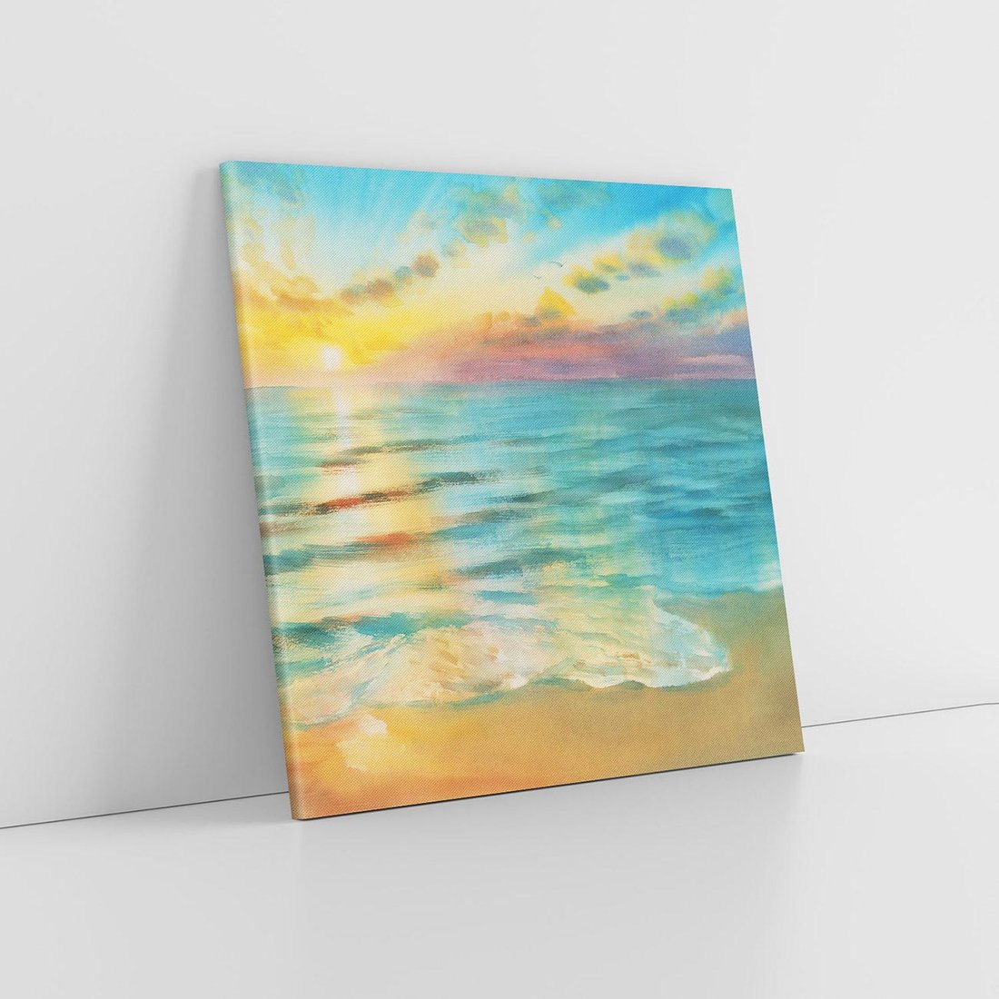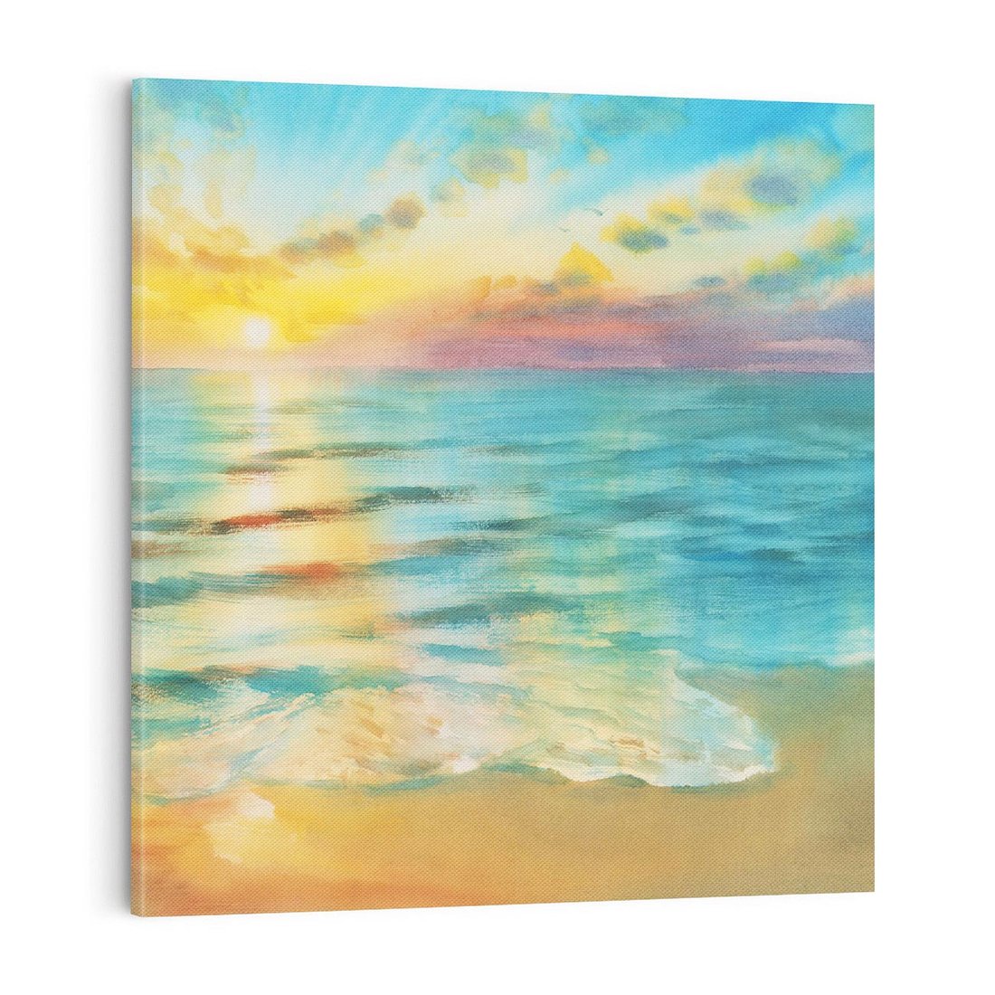 Obraz na płótnie 70x70 - Objawienie Fioletowego Świtu - fioletowy wschód słońca, słońce wschodzi nad morzem