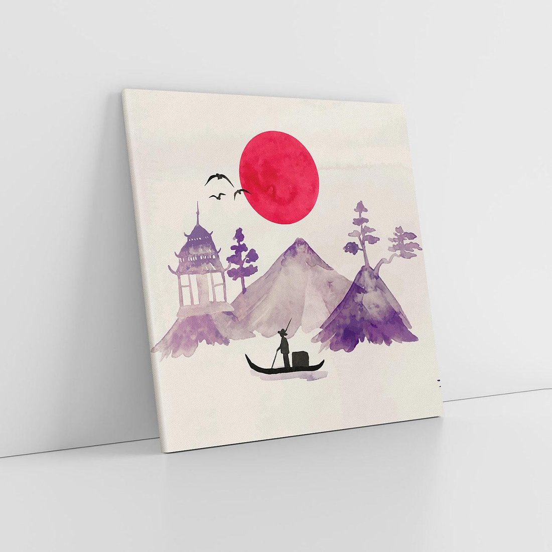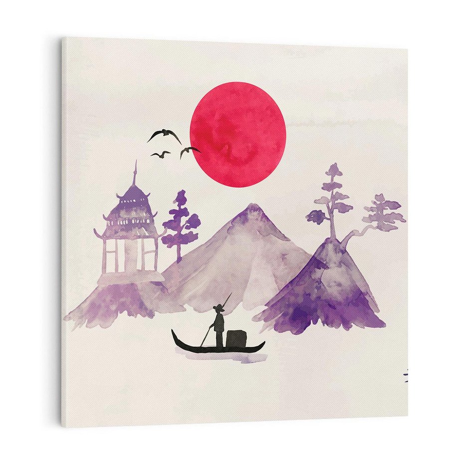 Obraz na płótnie 70x70 - Odbicie Słońca - japońska sztuka, akwarela