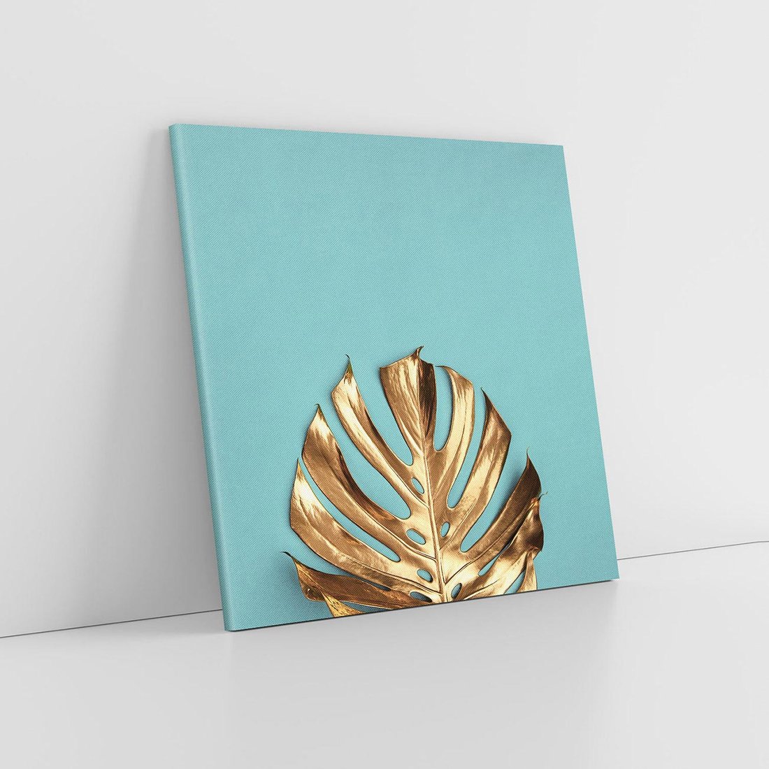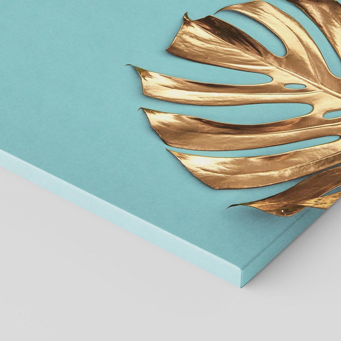 Przenieś piękno natury do swojego wnętrza za pomocą obrazu przedstawiającego złote liście monstera. Odczuj siłę i urok natury, które ożywają w tej minimalistycznej kompozycji.