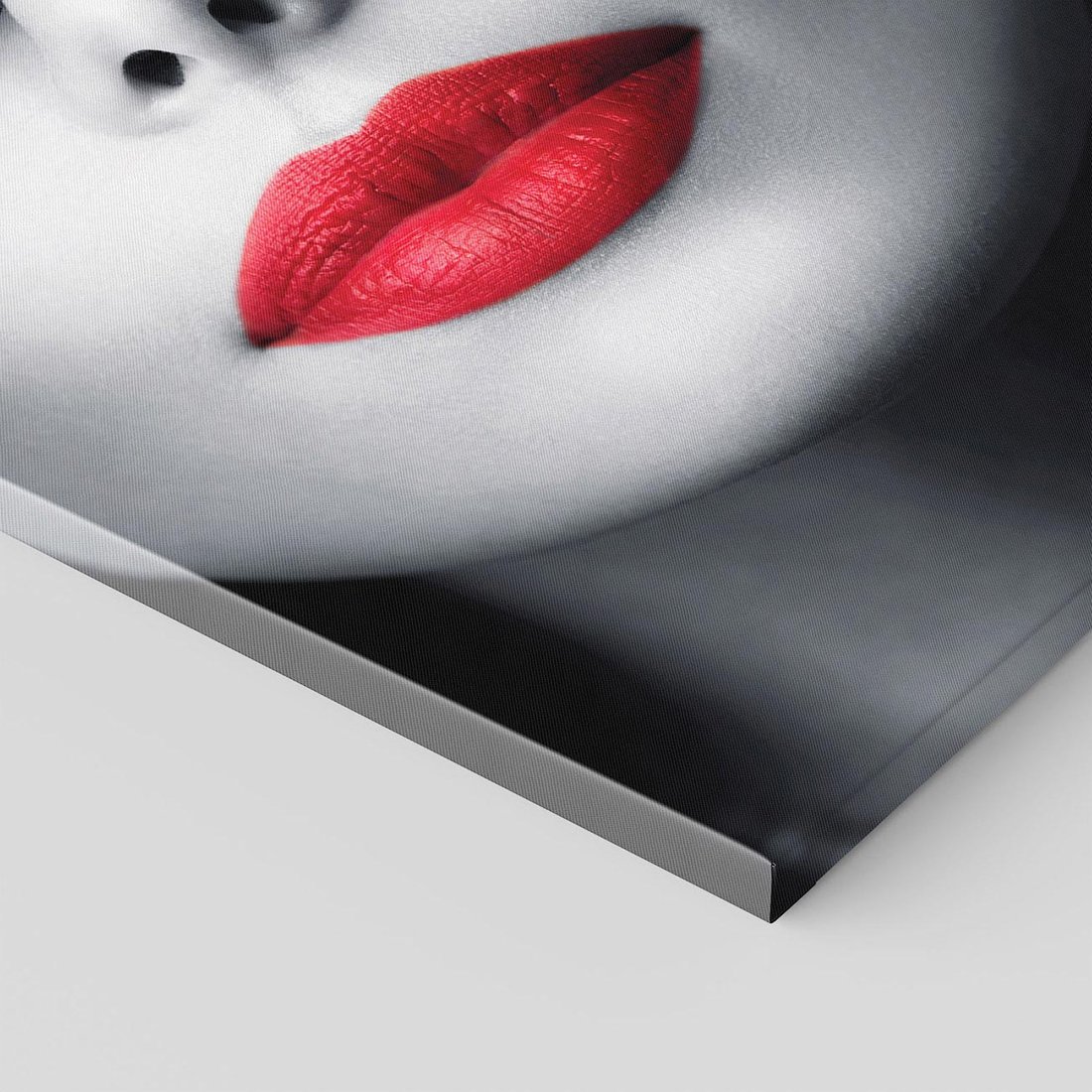 Przywołaj zmysłowość i elegancję dzięki temu uroczemu obrazowi przedstawiającemu usta z wyrazistą szminką. Intensywne kolory, delikatne cienie i subtelne detale tworzą wizerunek pełen uroku. Ten obraz dodaje pewności siebie i piękna, idealny dla osób ceniących wyraziste akcenty i modowy styl.