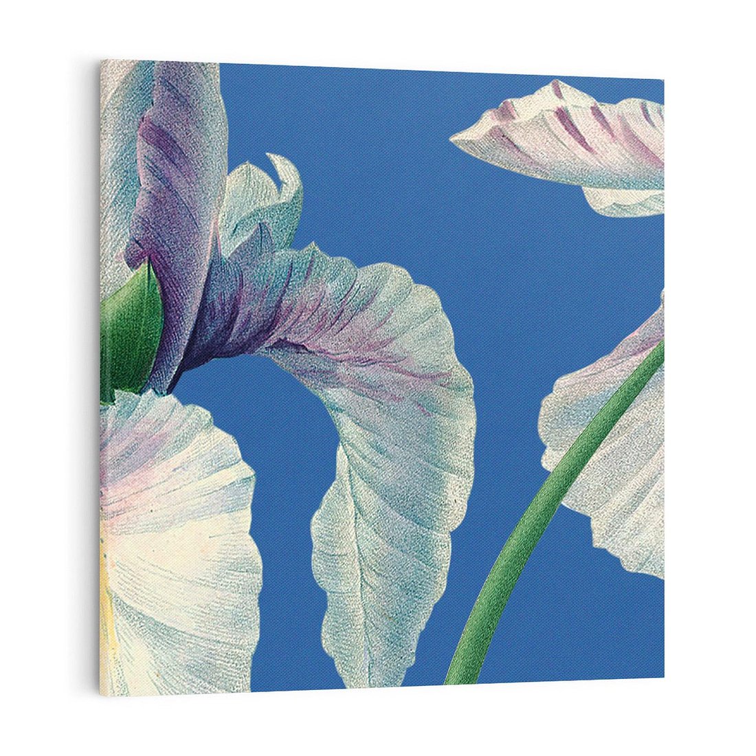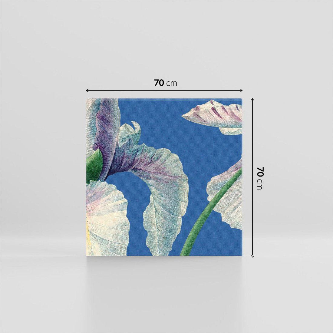 Zbliżenie na irysy w odcieniach niebieskiego przenosi nas w styl vintage, odzwierciedlając nostalgiczny urok minionych czasów. To nostalgiczne wyobrażenie natury przenosi nas w przeszłość, gdzie irysy emanują tajemniczym wdziękiem. To połączenie wyrafinowanej elegancji i subtelnej siły natury, które wypełnią Twoją przestrzeń magią minionych lat.