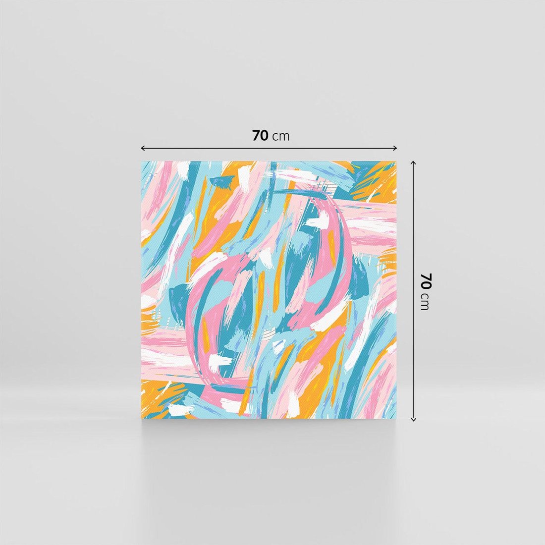 Ten abstrakcyjny obraz emanuje energią poprzez energiczne pociągnięcia pędzla, które tworzą pastelowy chaos barw. Tp dzieło jest niepowtarzalnym wybuchem kreatywności, gdzie swobodne ruchy pędzla przekształcają się w dynamiczną kompozycję, przynosząc unikalny duch i wibracje do przestrzeni.