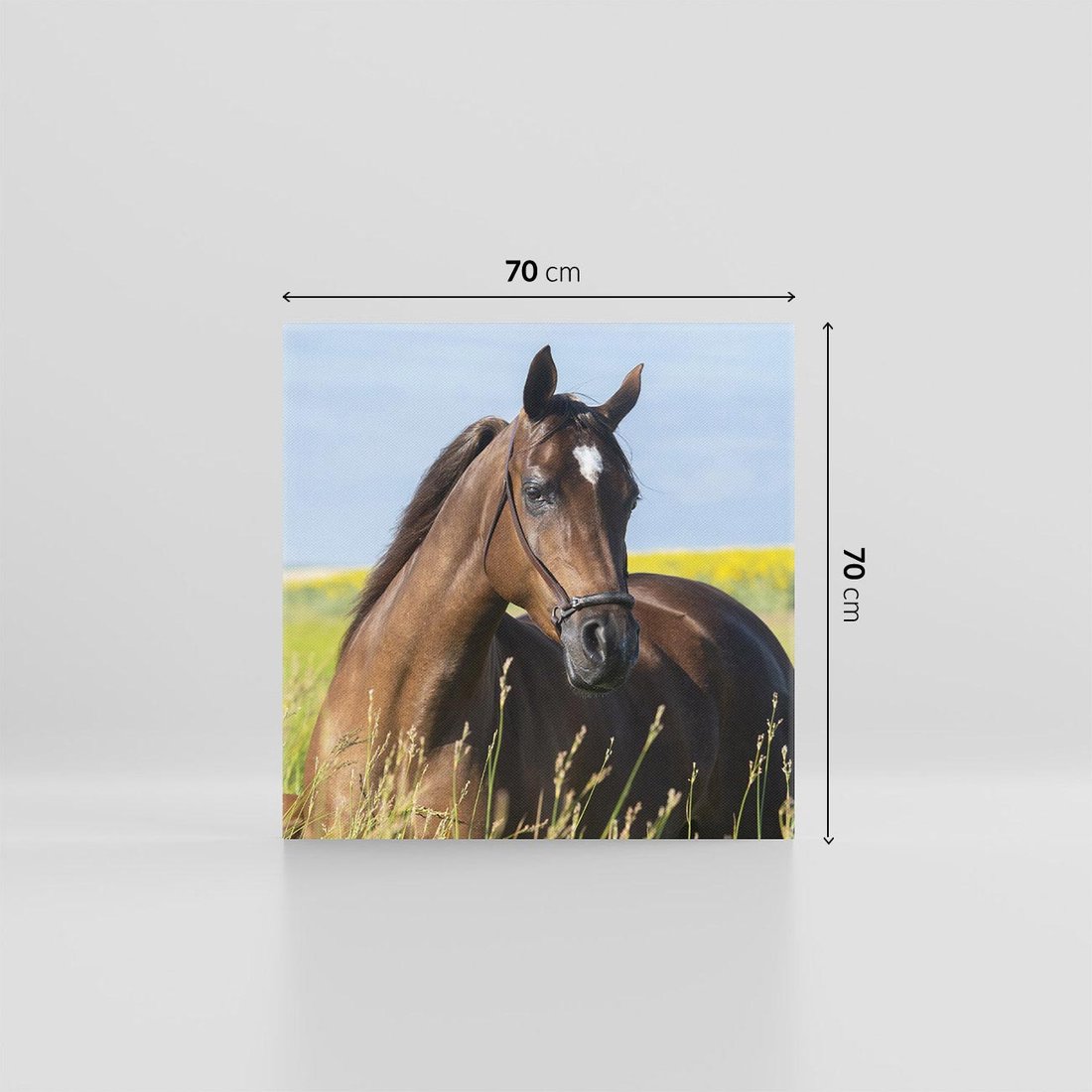 Obraz na płótnie 70x70 - Siła i piękno natury - koń, łąka