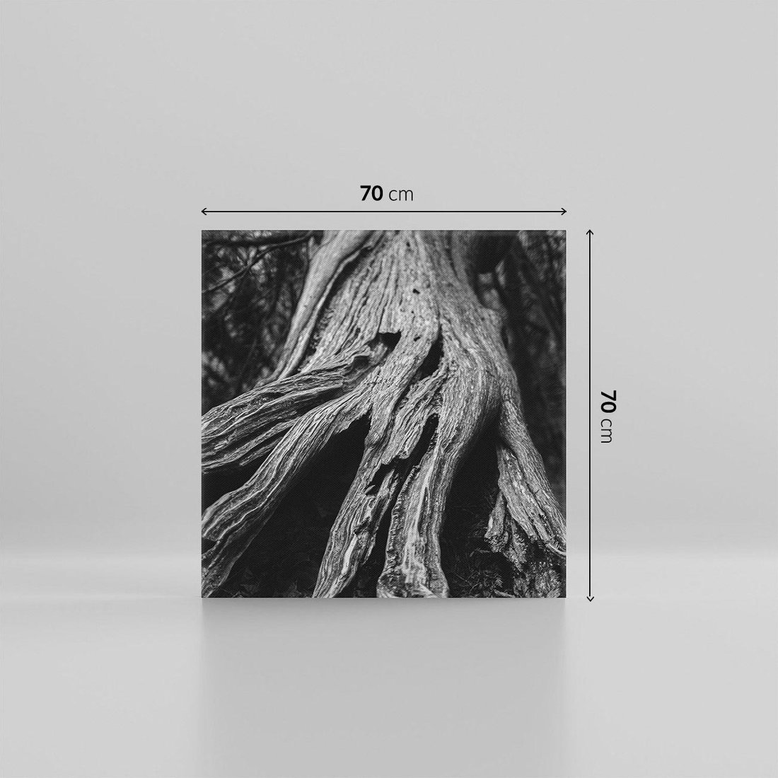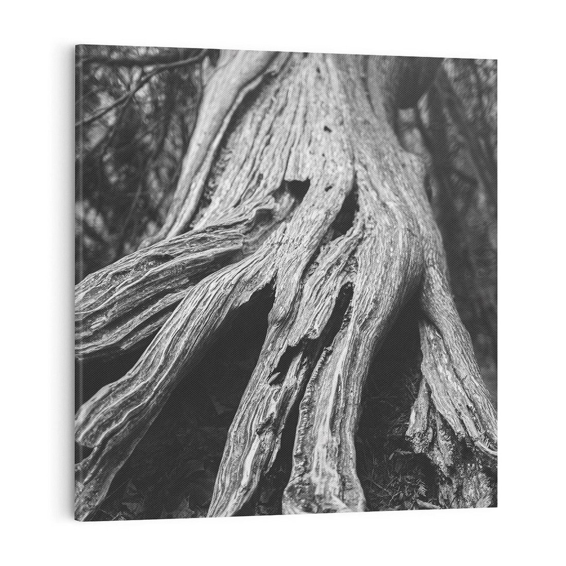 Obraz na płótnie 70x70 - Siła Natury - czarno biała fotografia, korzenie wielkiego drzewa