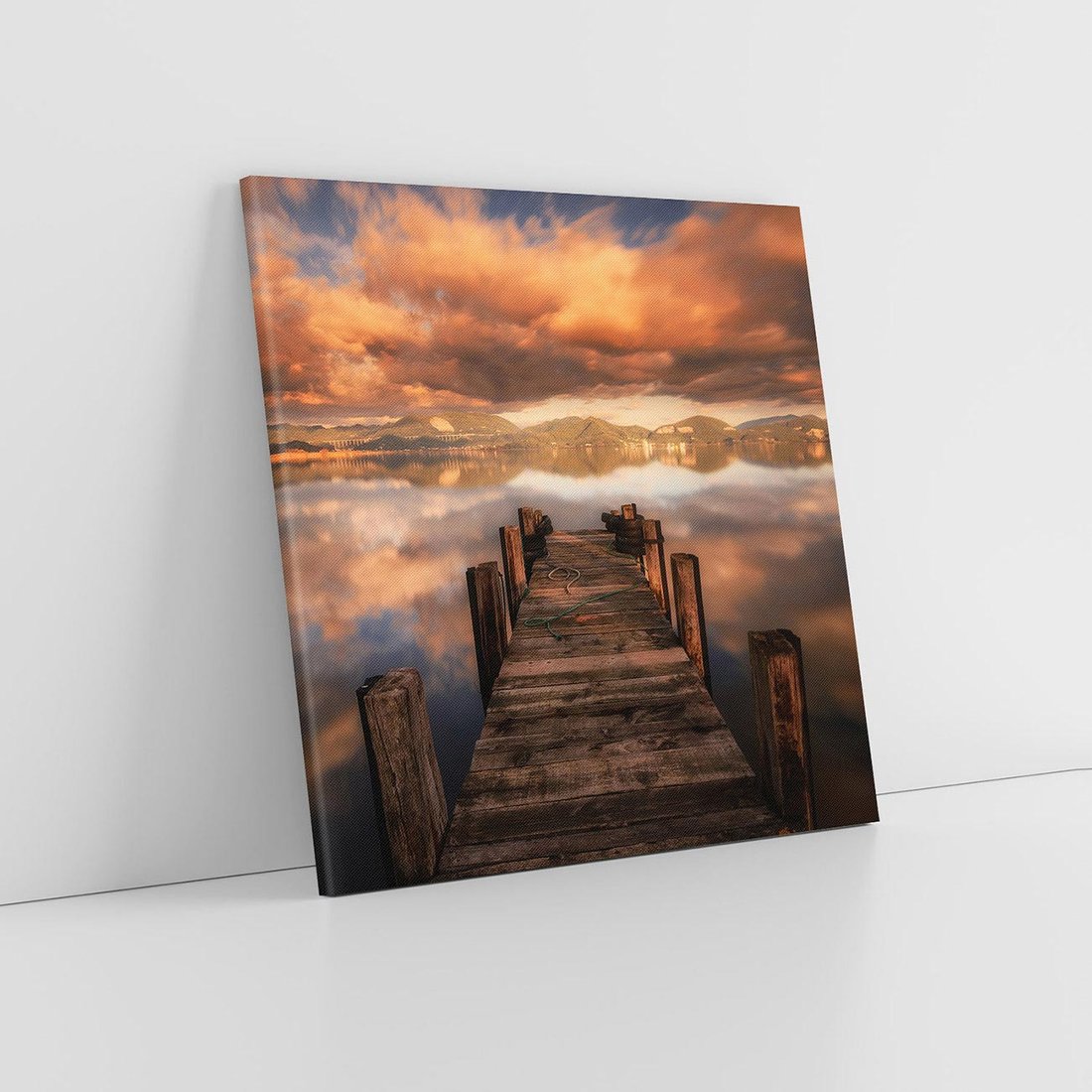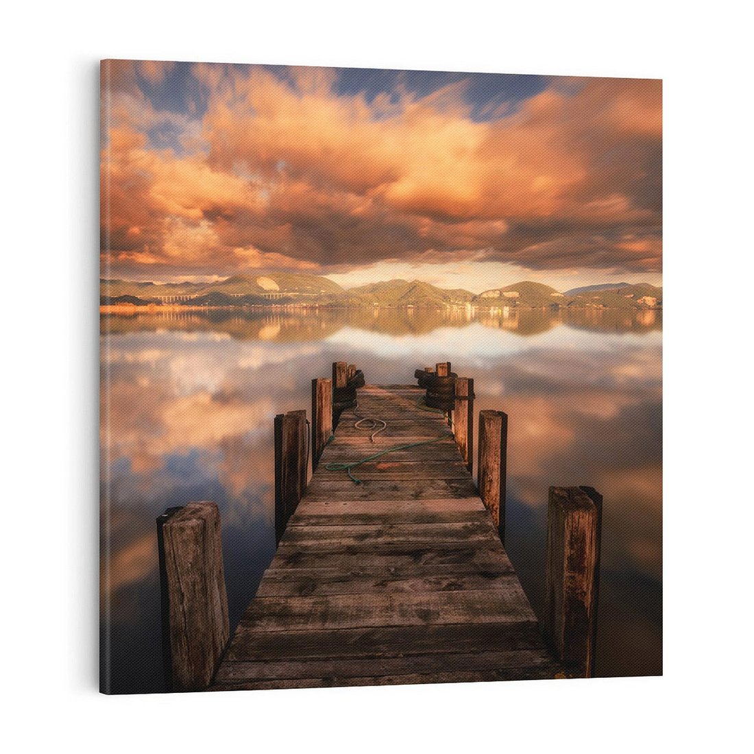 Obraz na płótnie 70x70 - Spacer po molo nad jeziorem - molo, jezioro