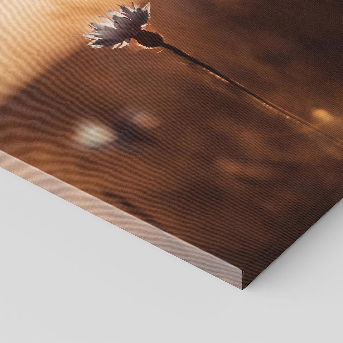 Ta kompozycja przedstawia spokojną łąkę, gdzie zachód słońca rozprzestrzenia ciepłe światło. Jej harmonijne kolory i delikatne kontrasty tworzą atmosferę relaksu i odprężenia. Doskonały wybór dla osób pragnących wprowadzić do swojego wnętrza spokój natury i sielankowy nastrój.