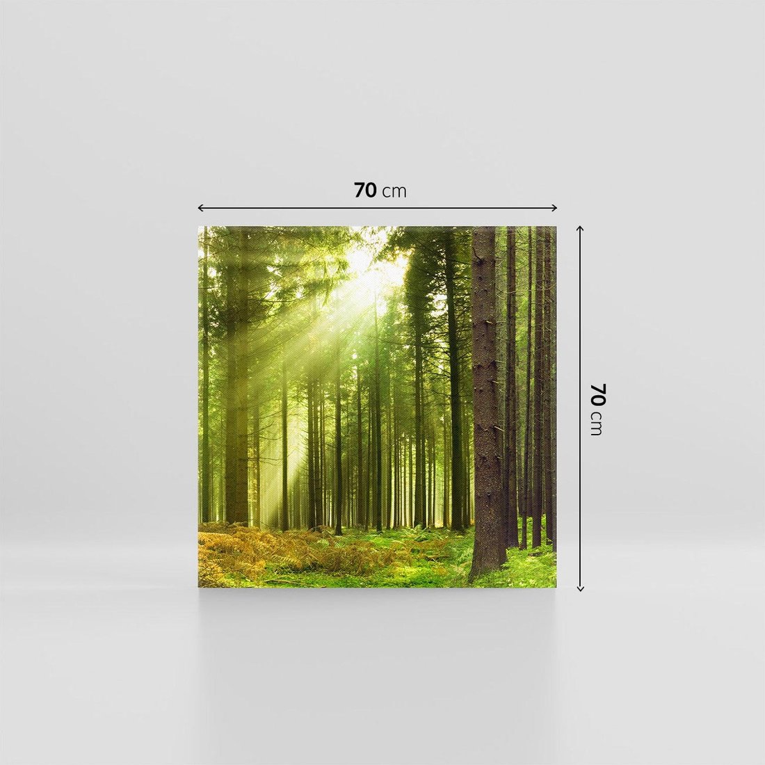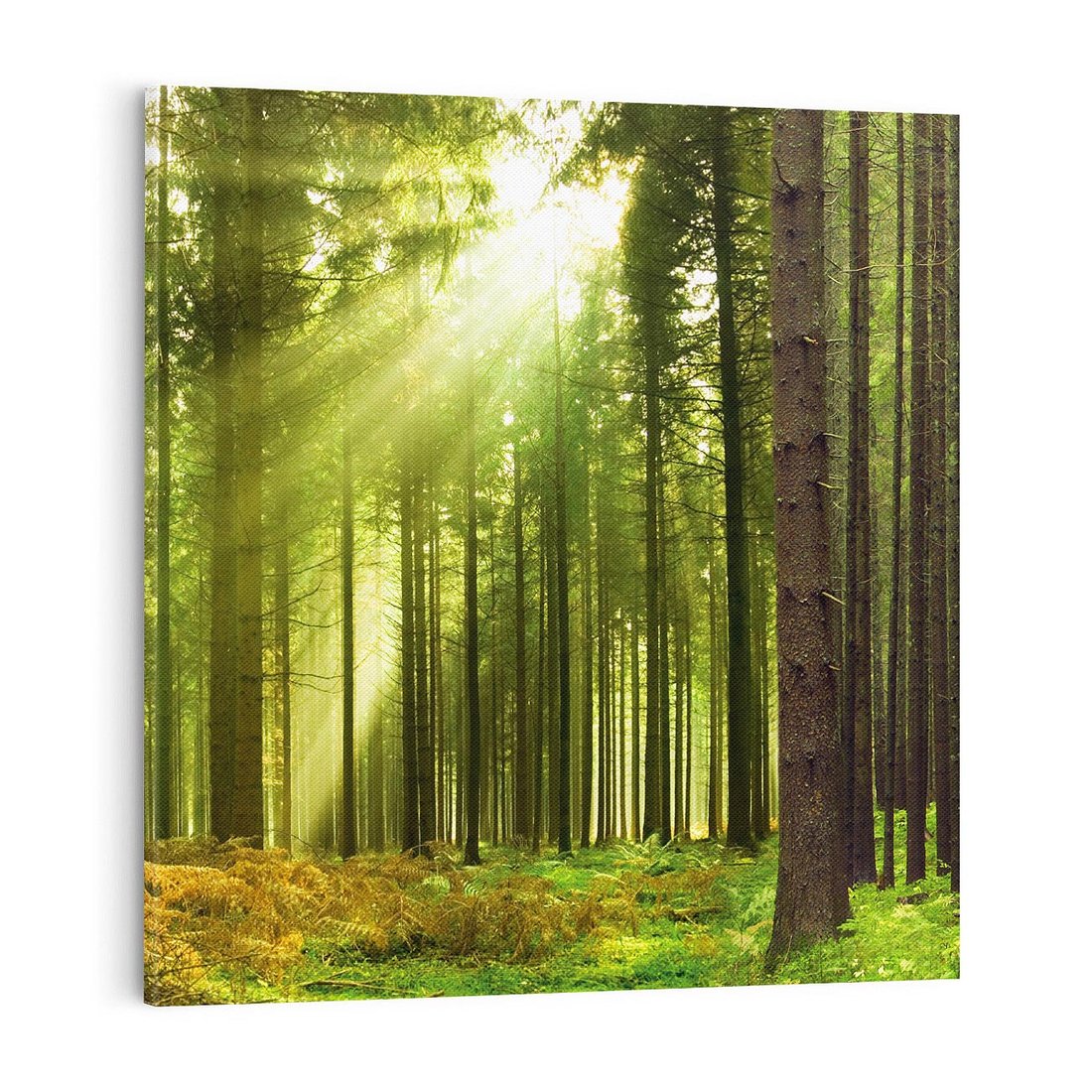 - Obraz na płótnie 70x70 - Spokój wśród drzew: las w odcieniach zieleni
