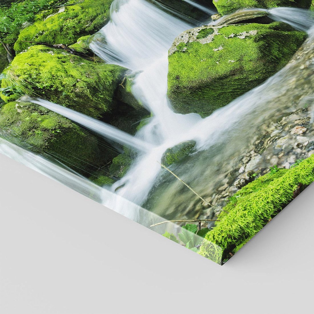 Odkryj urok natury dzięki temu malowniczemu obrazowi przedstawiającemu spokojny wodospad w lesie nad rzeką. Soczysta zieleń, świeże powietrze i delikatne szmery wody tworzą harmonijną atmosferę. Ta kompozycja dodaje relaksu i bliskości natury, idealna dla osób pragnących odnaleźć spokój i równowagę w otaczającym świecie.