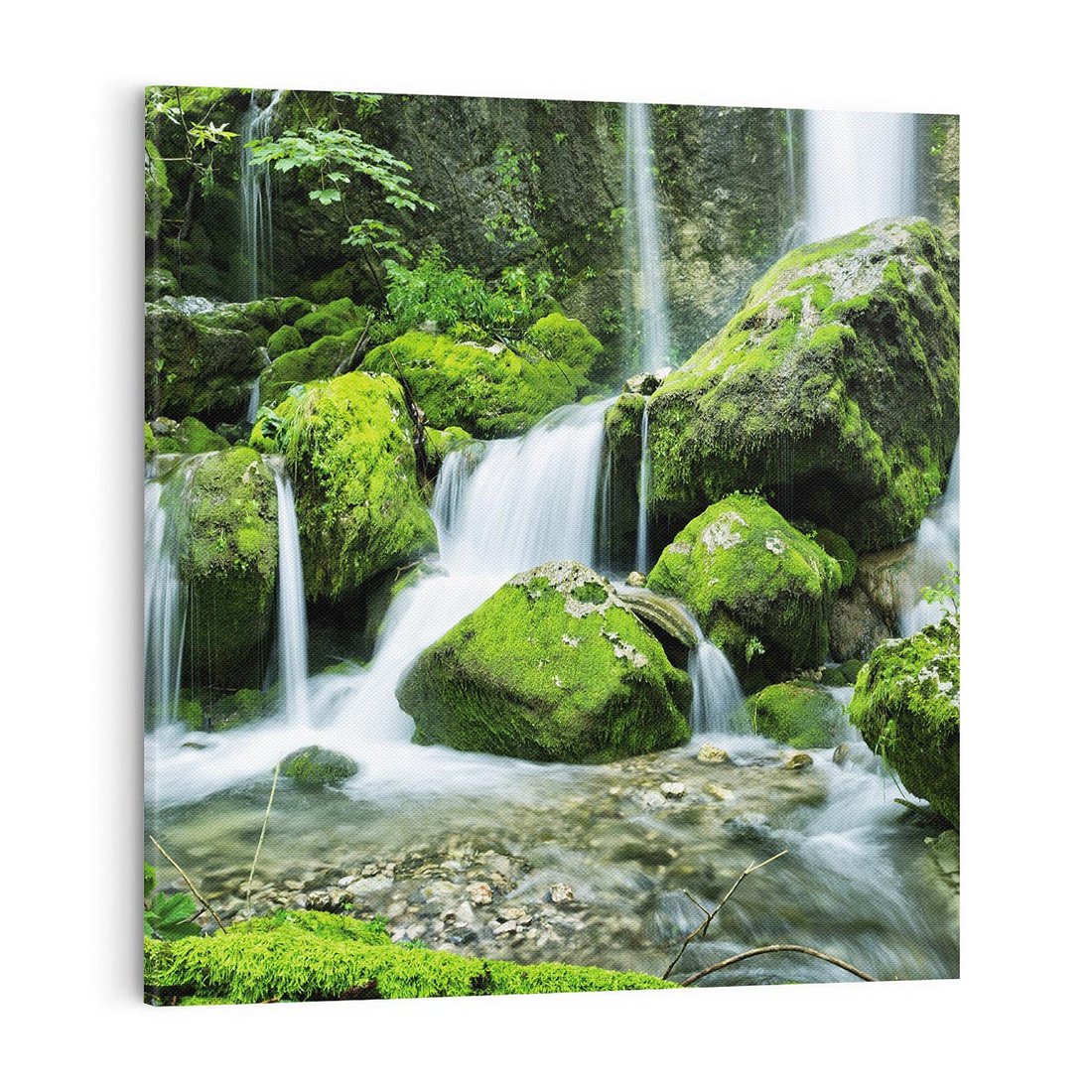 - Obraz na płótnie 70x70 - Spokojny wodospad w lesie nad rzeką