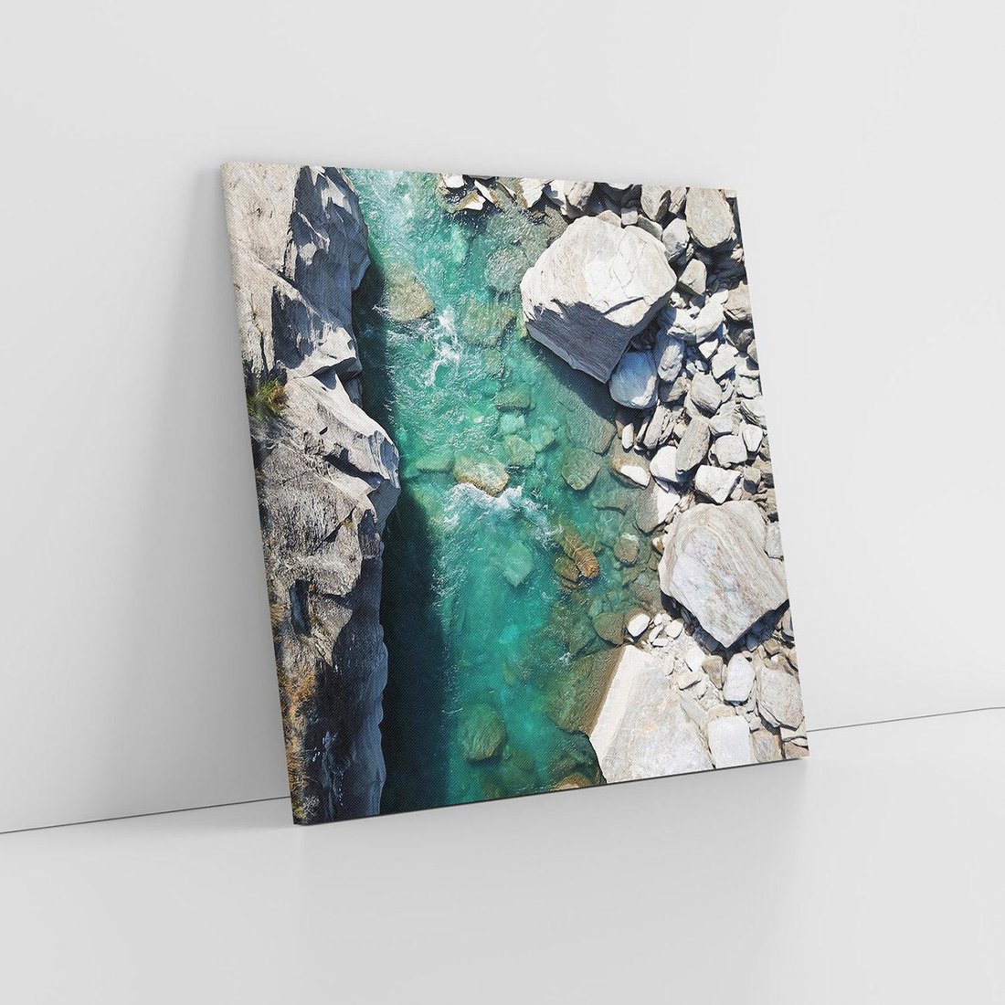 Obraz na płótnie 70x70 - Spotkanie natury i siły - rzeka, skały