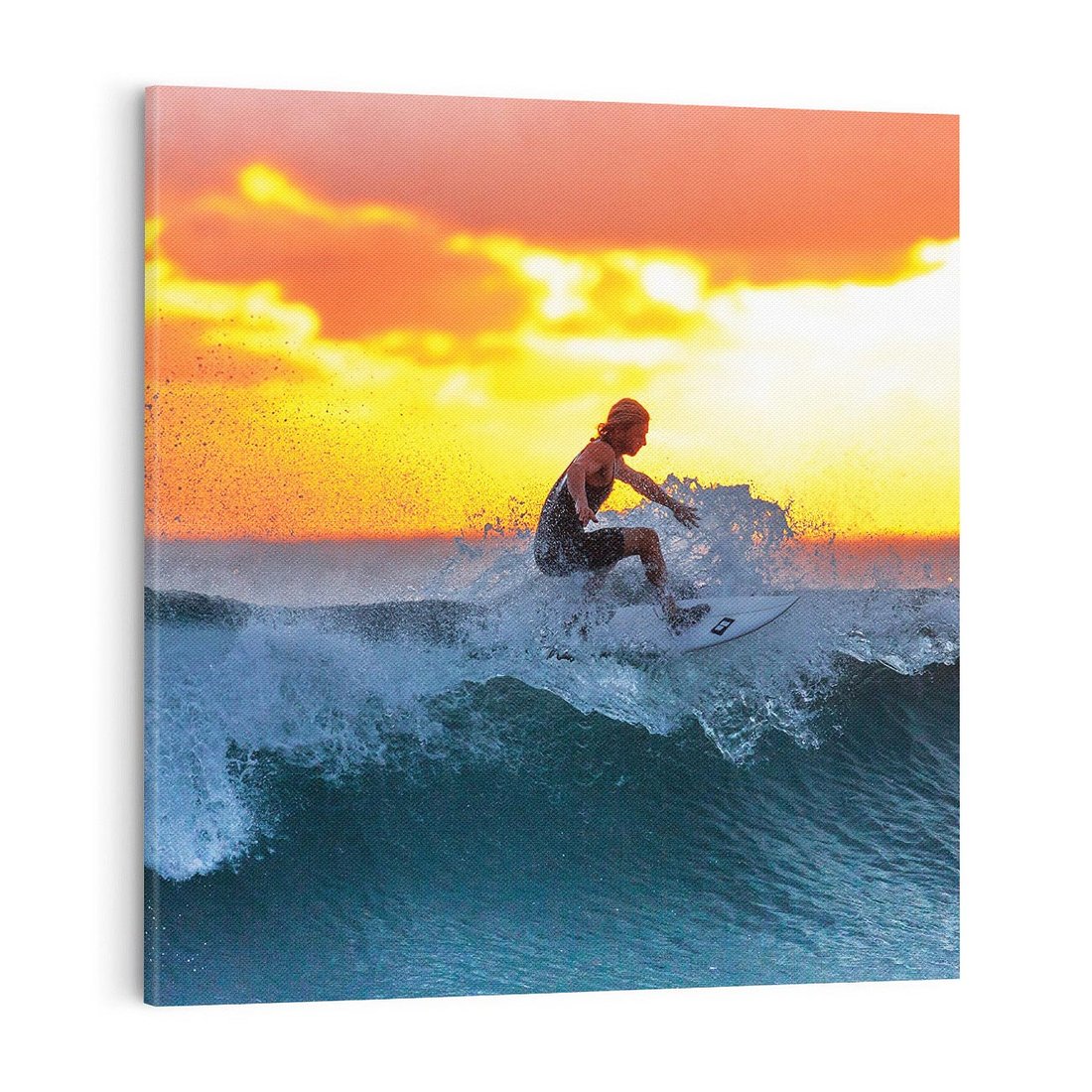- Obraz na płótnie 70x70 - Surfer na falach morza: Spotkanie z wolnością