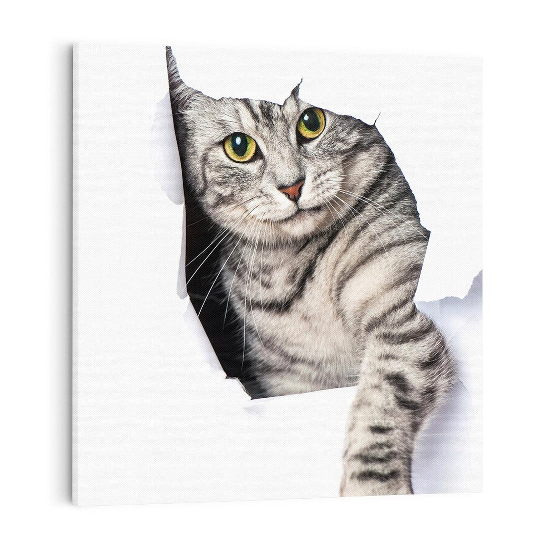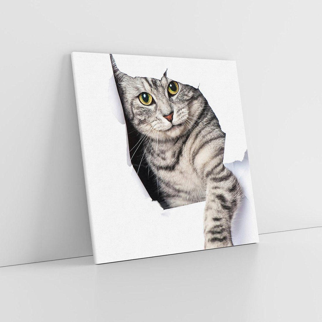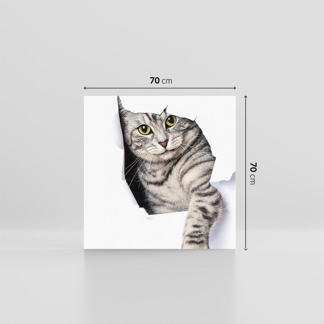 Obraz na płótnie 70x70 - Tajemniczy kot i jego świat - kot, dziura