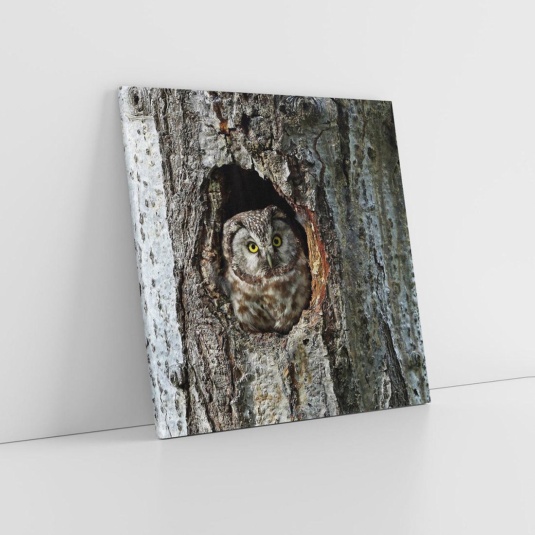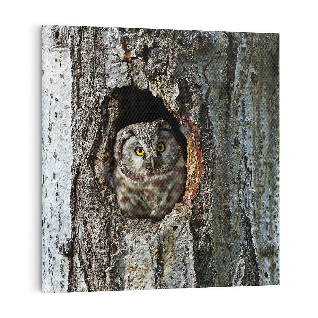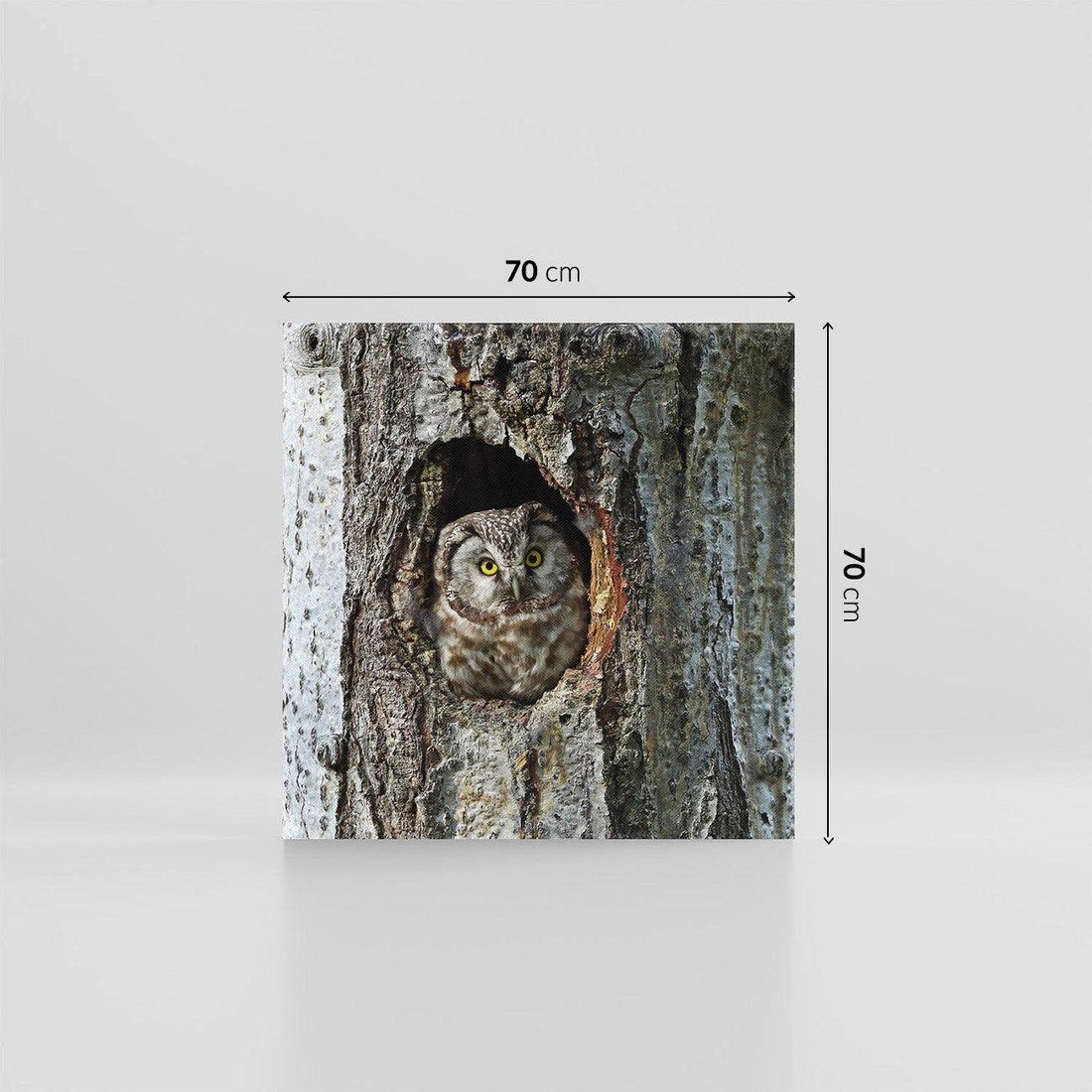 Obraz na płótnie 70x70 - Tajemniczy W świecie Nocy - sowa, dziupla