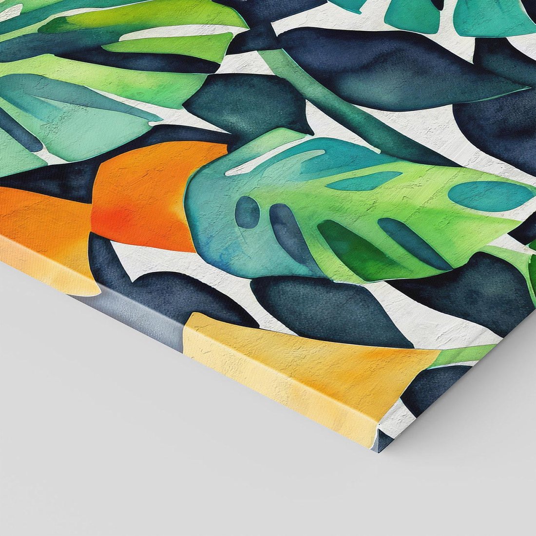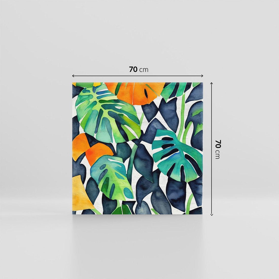 Obraz na płótnie 70x70 - Tropikalne Pragnienia - akwarela, liście tropikalne