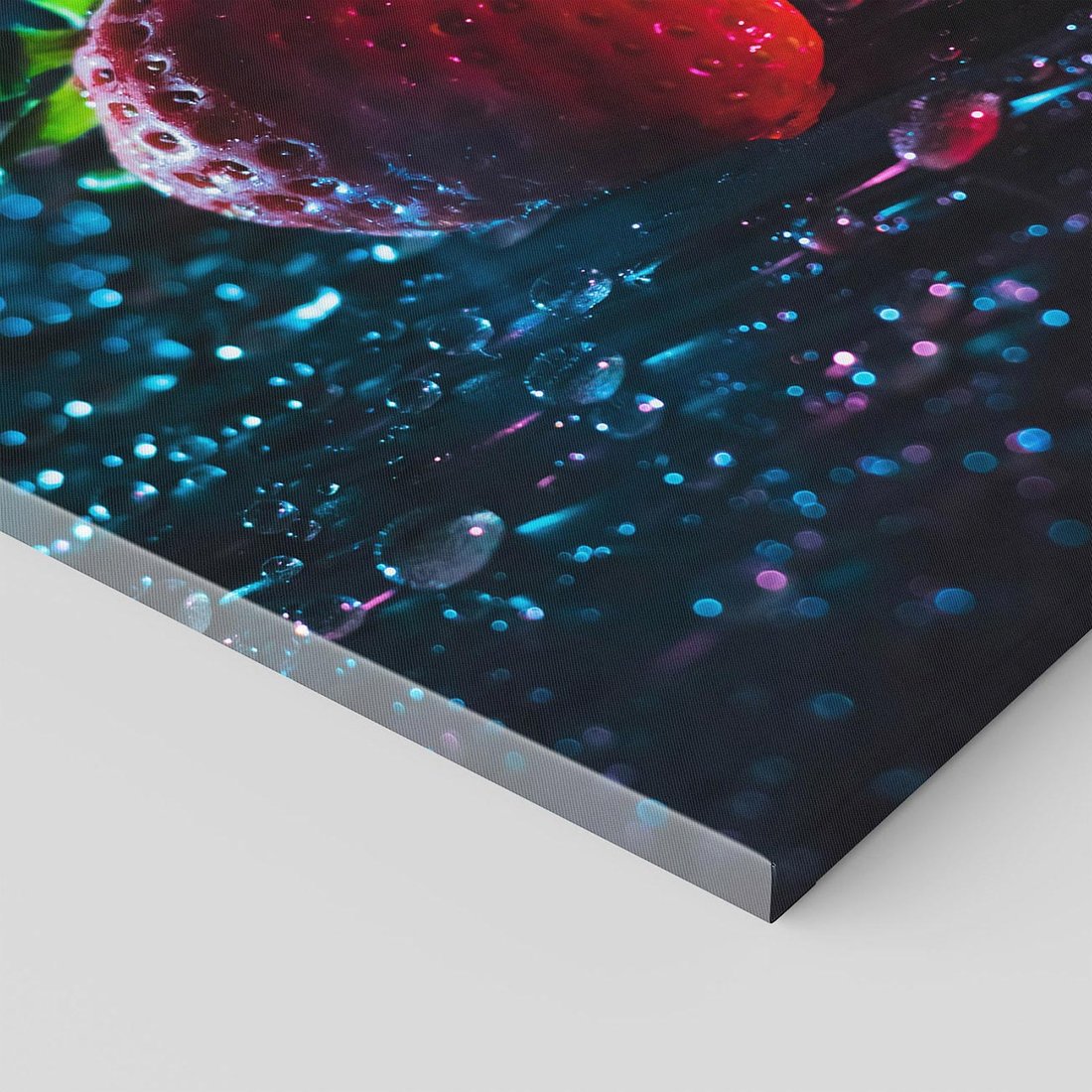 Przenieś się w letni poranek dzięki temu malowniczemu obrazowi przedstawiającemu truskawkę. Soczyste owoce, delikatne krople wody i apetyczna kompozycja tworzą nastrojową atmosferę. Ta kompozycja dodaje świeżości i apetycznych wrażeń, idealna dla miłośników owoców i orzeźwiających akcentów w wystroju wnętrza.