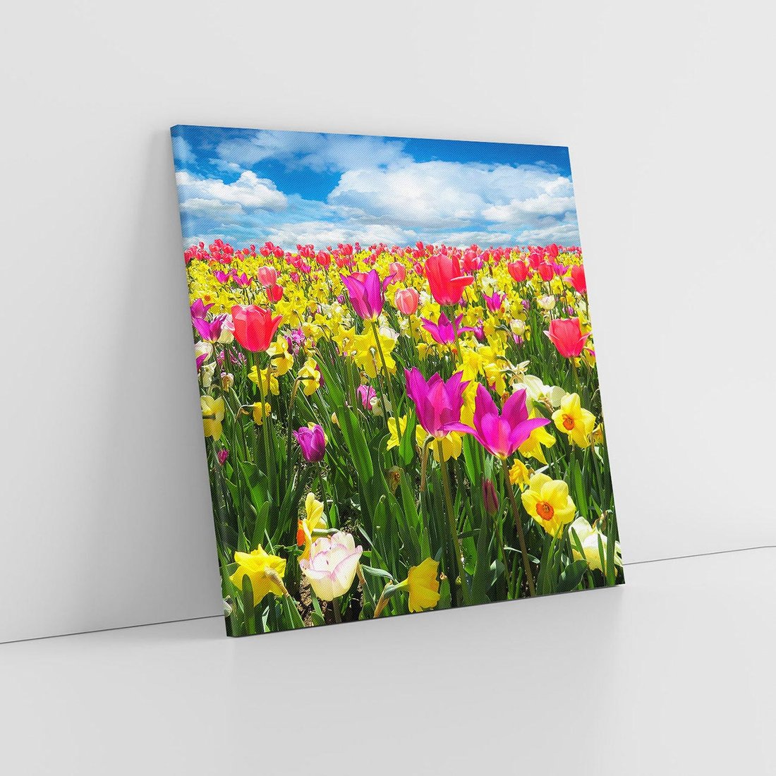Obraz na płótnie 70x70 - tulipany na łące - kwiaty, tulipany