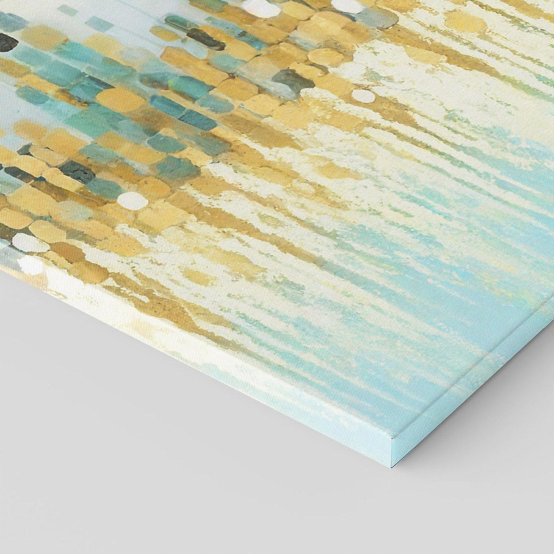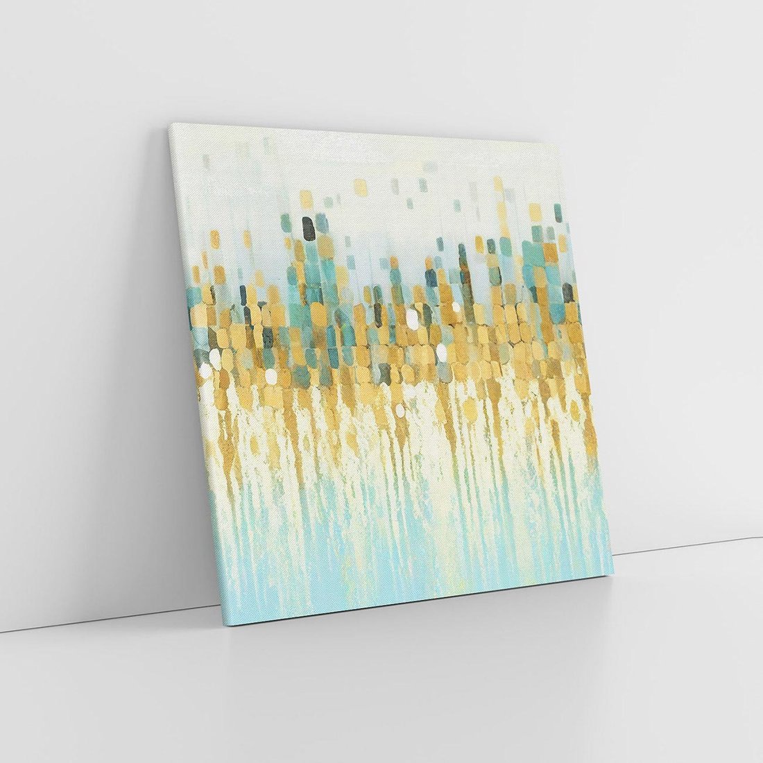 Ten abstrakcyjny obraz w nowoczesnym stylu, z geometrycznymi plamkami w odcieniach złota, emanuje harmonią i spokojem. Jego świeży design stanie się doskonałym akcentem dekoracyjnym, dodając elegancji i wyrafinowania każdemu wnętrzu.