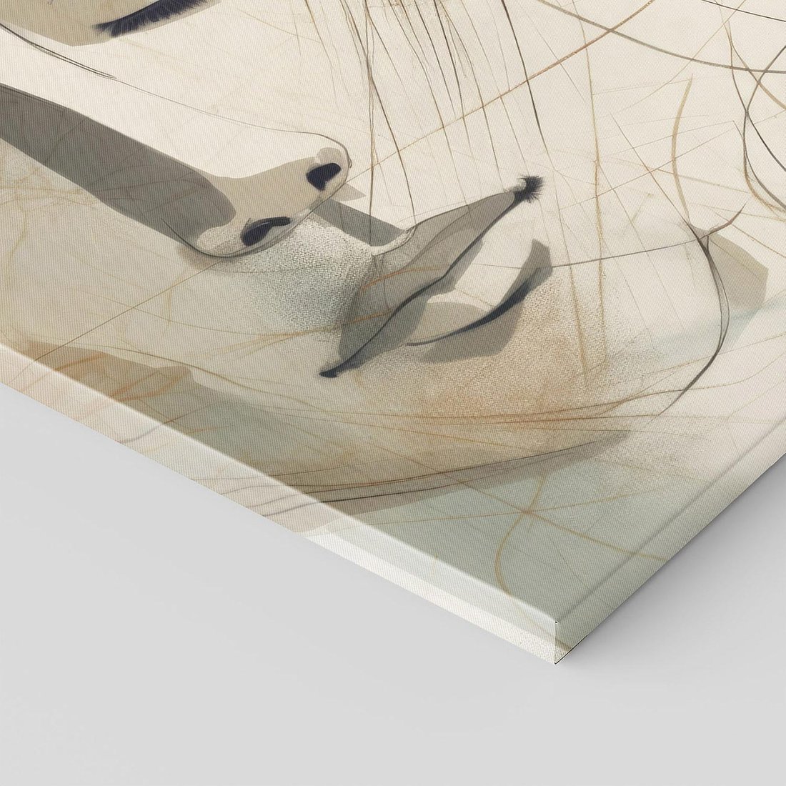 Ten obraz przedstawia twarz kobiety z zamkniętymi oczami wykonaną techniką akwareli. Szkic w neutralnych beżowych kolorach dodaje kompozycji delikatności i subtelnego piękna. Obraz emanuje spokojem i elegancją, przenosząc widza w refleksyjny nastrój. To artystyczne dzieło doskonale pasuje do nowoczesnych wnętrz, nadając im wyjątkowego charakteru.