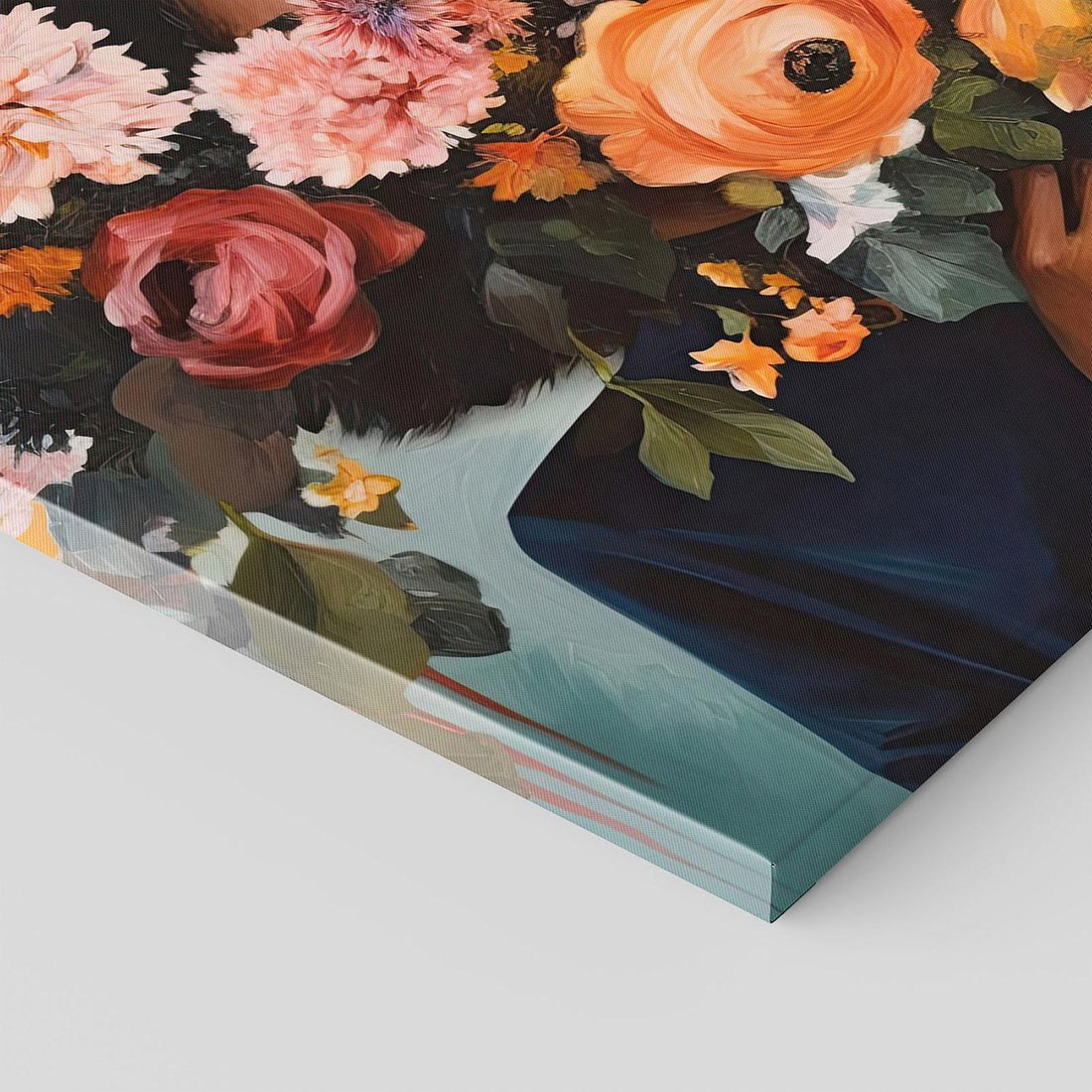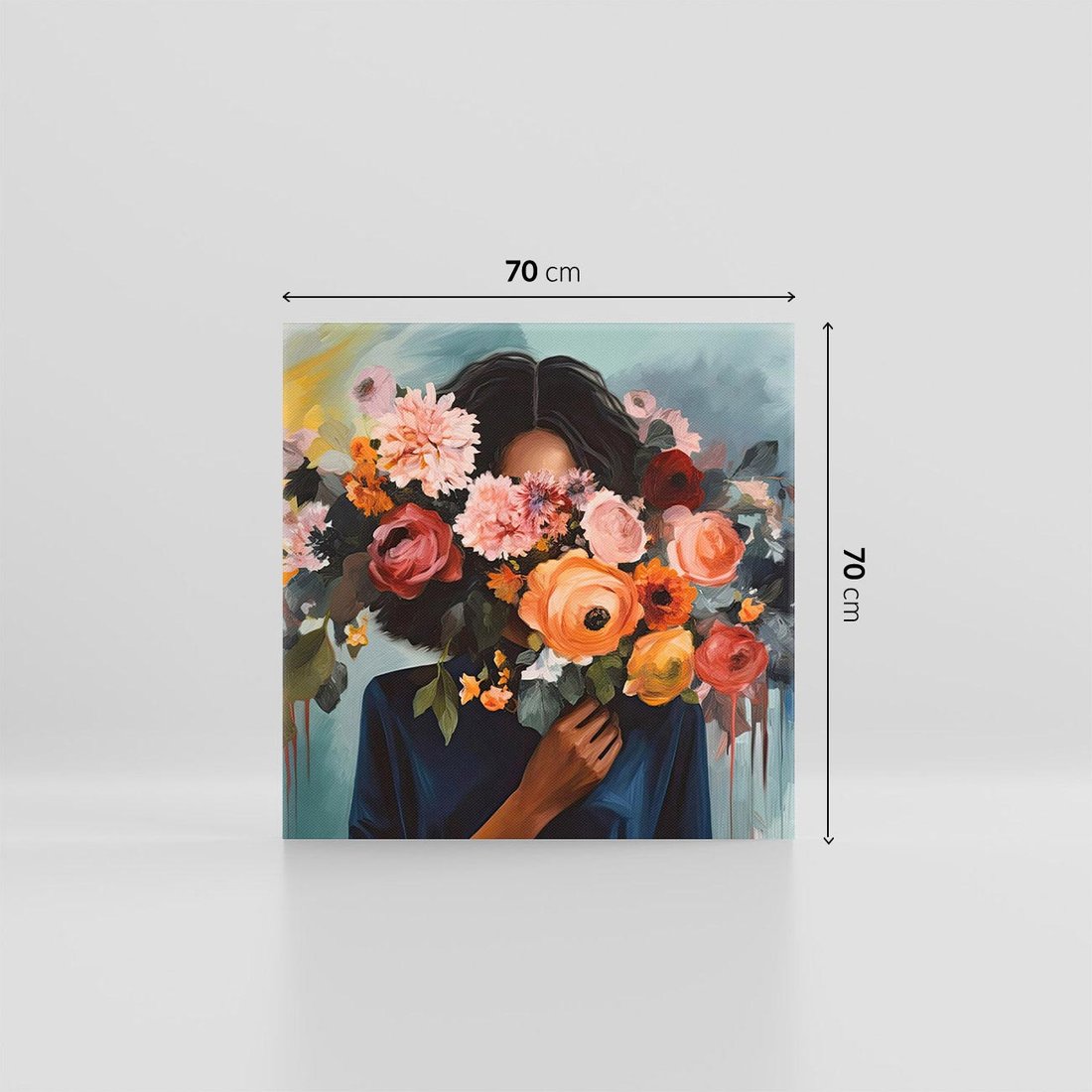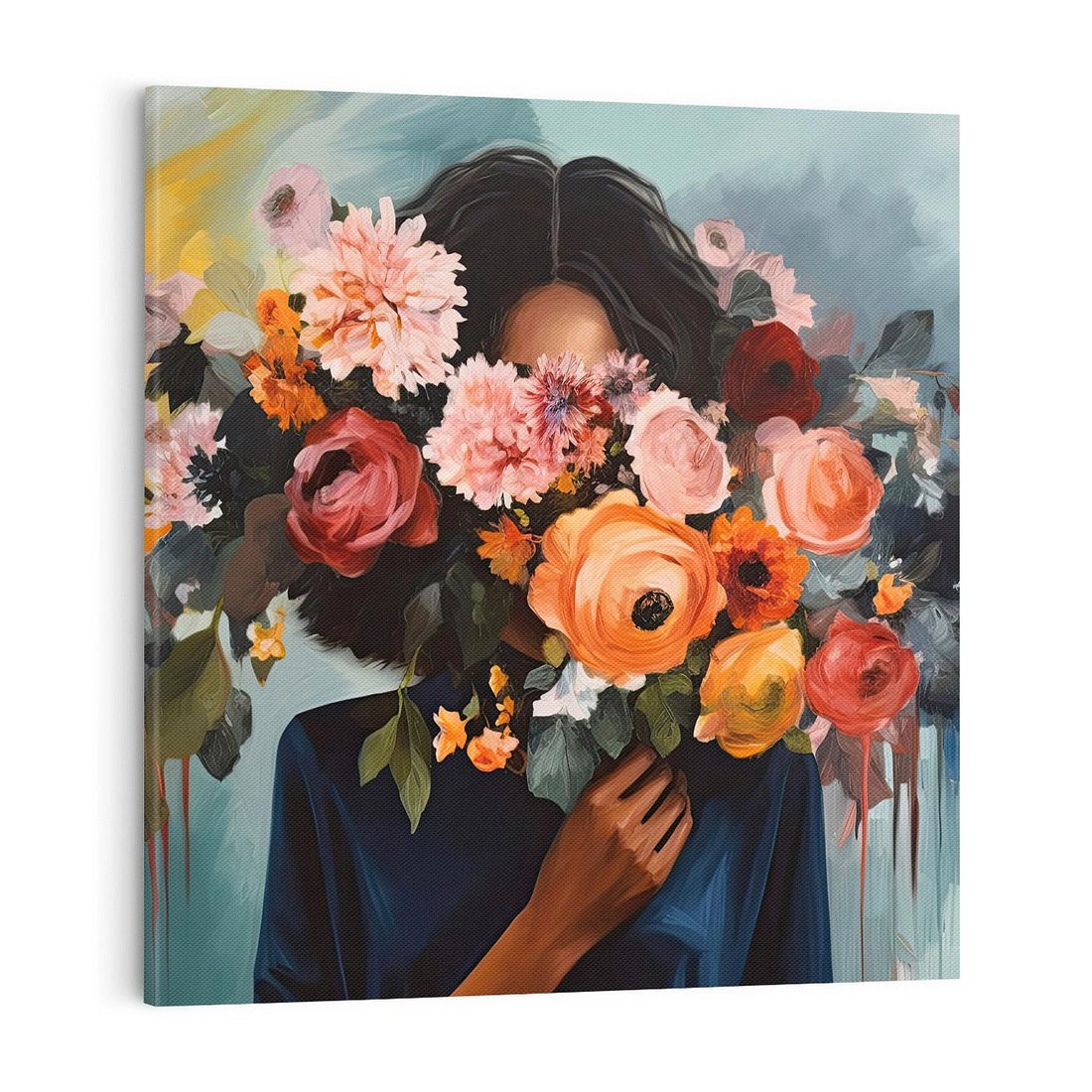 To wyjątkowy obraz wykonany techniką akwareli. Przedstawia on piękną kobietę trzymającą bujny bukiet kwiatów, które subtelnie zasłaniają jej twarz, pozostawiając miejsce dla wyobraźni. "Ukryte Emocje" emanuje tajemniczością i subtelnością, zachęcając widza do odkrycia głębszych uczuć i myśli. To idealna dekoracja dla osób, które doceniają delikatność i niepowtarzalny urok akwareli.