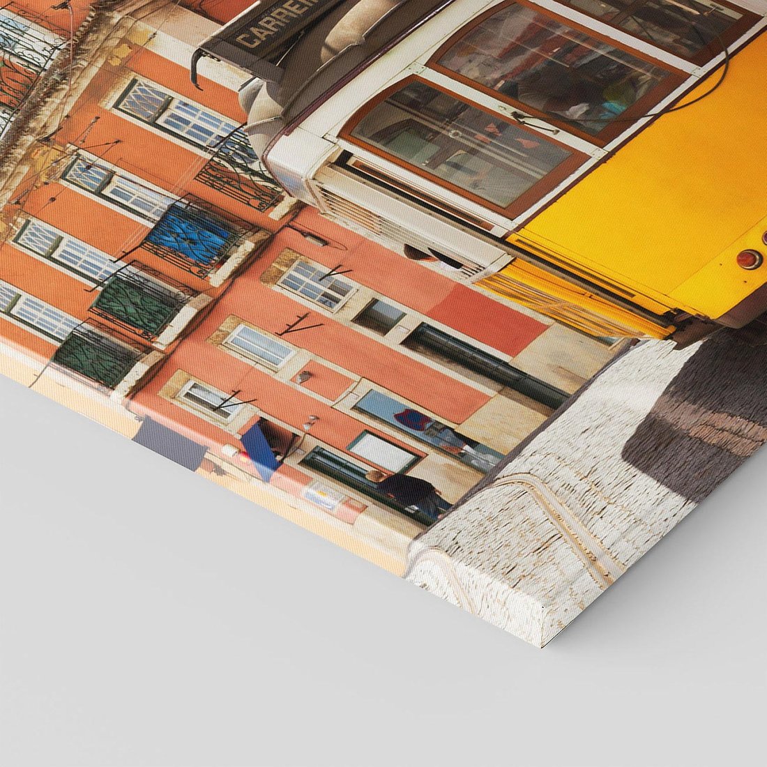 Odkryj urok tramwaju w Lizbonie dzięki temu uroczemu obrazowi. Z kolorowymi fasadami i nostalgicznych nastrojem, ożywia przestrzeń. Ta kompozycja dodaje miejskiego charakteru i romantyzmu, idealna dla miłośników portugalskiego uroku i unikalnych środków transportu.