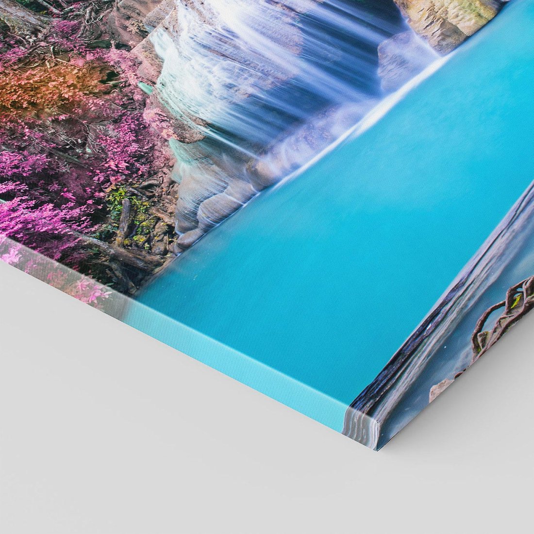 Odkryj urok Tajlandii dzięki temu malowniczemu obrazowi przedstawiającemu wodospad ukryty w lesie. Głęboka zieleń drzew, płynąca woda i egzotyczna atmosfera tworzą aurę magicznego miejsca. Ta kompozycja dodaje spokoju i naturalnego piękna, idealna dla miłośników egzotycznych podróży i przyrody.