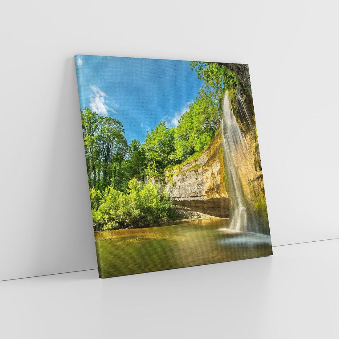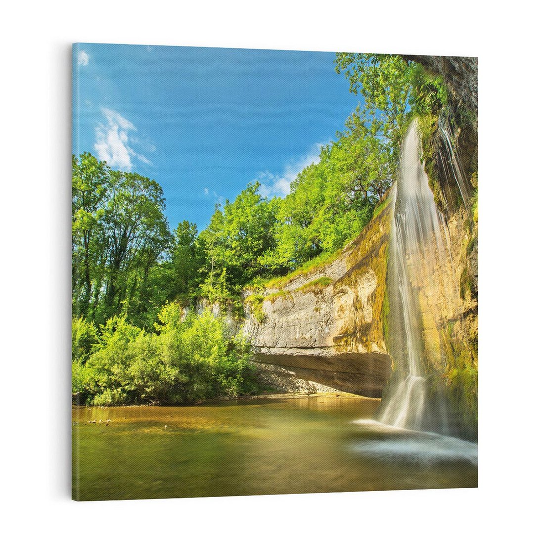 Obraz na płótnie 70x70 - Wodospad: Skały w ruchu - wodospad, las
