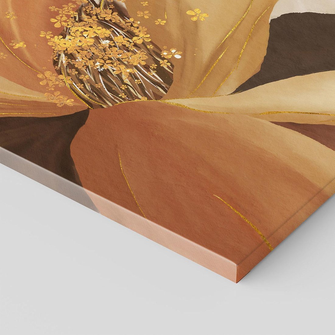 Dodaj wyrazu luksusu do swojego wnętrza za pomocą obrazu przedstawiającego sztukę nowoczesną w złocie. Poczuj elegancję i prestiż, jakie przyniesie ta malownicza kompozycja do Twojego domu.