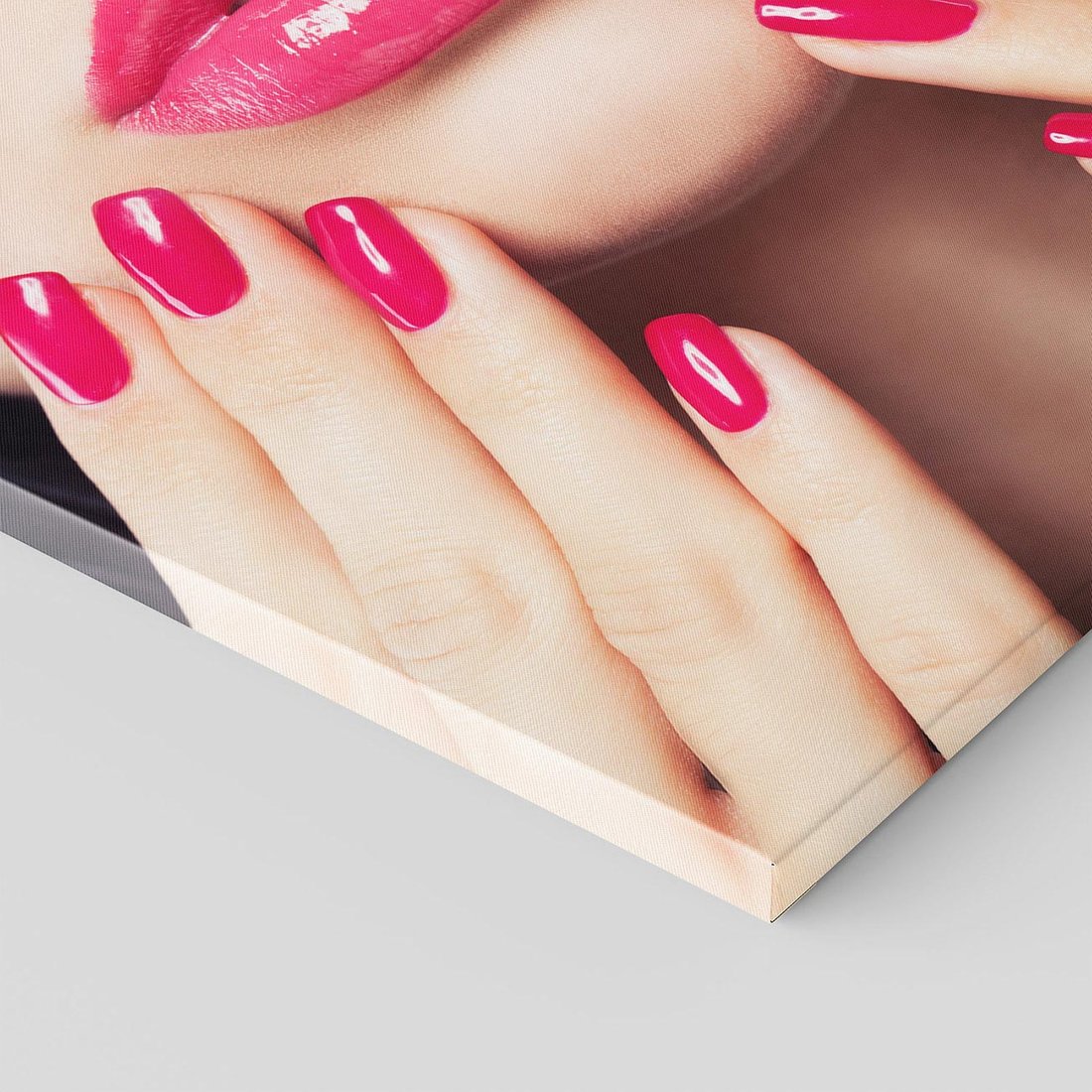 Ten stylowy obraz przedstawiający paznokcie, usta i makijaż wprowadzi do Twojego wnętrza wyrażenie piękna i indywidualności. Ciesz się subtelnością detali i dodaj wyrazistości do swojego wnętrza.