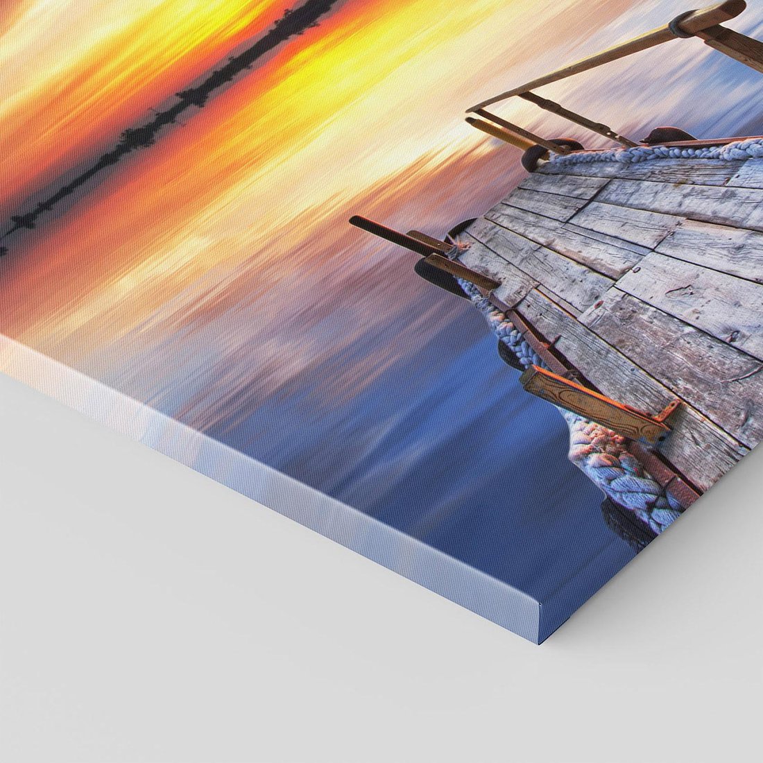 Przenieś się w magiczny świat barw i emocji dzięki temu ujmującemu obrazowi przedstawiającemu zachód słońca na pomostcie. Ciepłe odcienie, błyszczące refleksy i romantyczny nastrój tworzą niezapomnianą aurę. Ta kompozycja dodaje romantyzmu i nostalgi, idealna dla miłośników zachodów słońca i piękna przyrody.